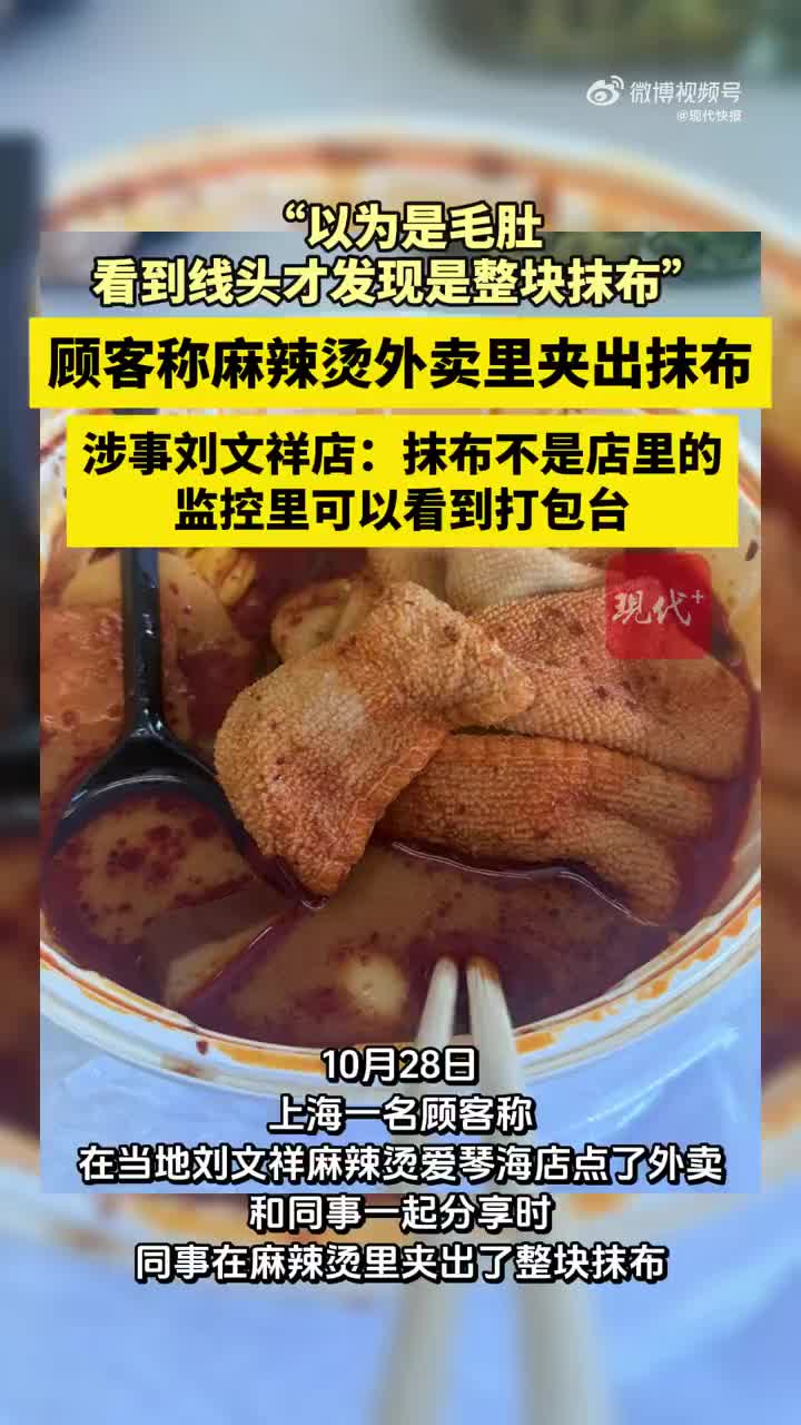 10月28日,上海一名顾客发文称,在当地刘文祥麻辣烫爱琴海店点了外卖,和同事一起分享时,同事在麻辣烫里夹