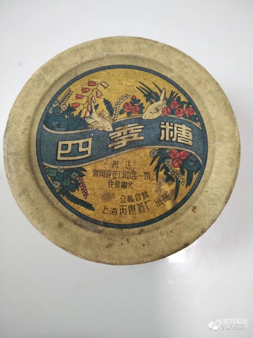 笔者的家人解放前从宁波镇海移民到了上海,老人们以前经常购买丙康药厂的四季糖,时常来一颗润润嗓子。时过迁境,当年购买过四季糖的老人们不少都早已去世,但是这个盒子被保留了下来。该盒子为厚纸制作,直径7厘米,高度为3厘米。盒子上写“四季糖”字样,上海丙康药厂出品。如今看着手中的这个老物件,令我感慨万千。