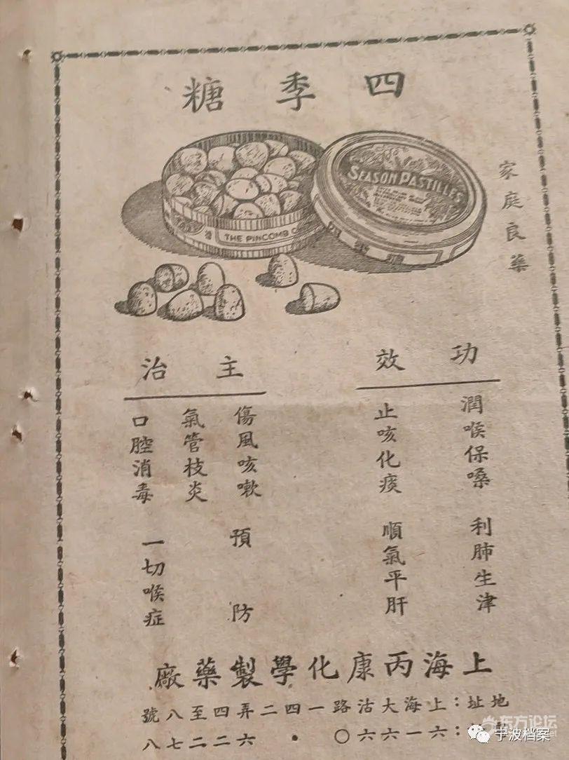 别看现在润喉糖不稀奇,在当年也算是稀罕物。一经上市,四季糖凭着那脍炙人口的广告语“居家旅行,必备一盒,常含一颗,润喉保嗓”而风靡大江南北。据说,该润喉糖的特点就是一经含在嘴里,过一会儿喉咙就顿时舒服无比,尤其适合艺人登台唱戏前服用。当时一些名角整天就是靠喉咙吃饭,所以一般总会随身携带着以备不时之需。有时甚至到外地演出前,一定要坐上车专门到大药店预先购置几盒才放心。