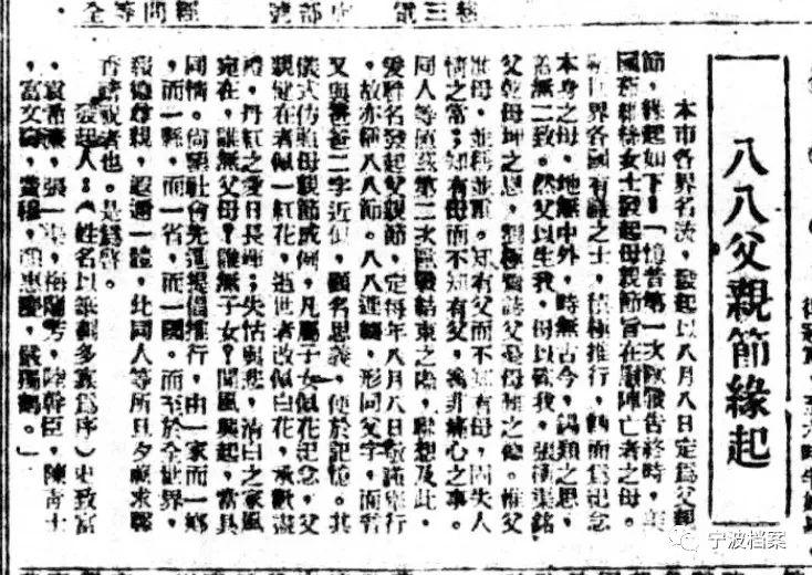 1945年8月6日《申报》刊登史致富等人联名发表的《八八父亲节缘起》