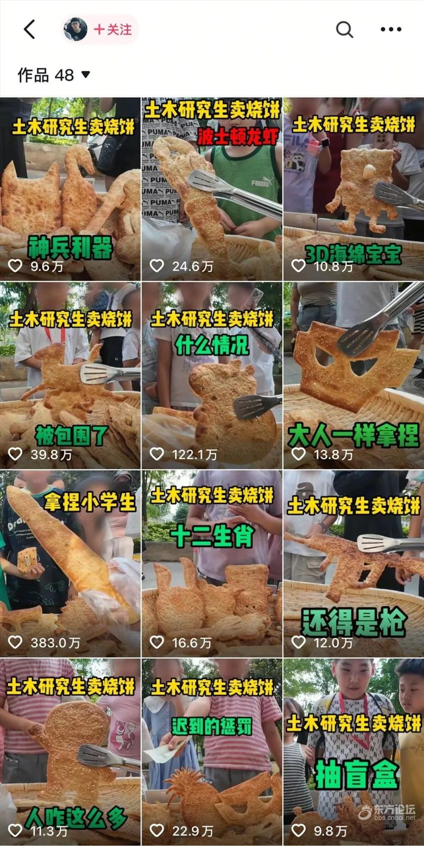 河南郑州有一个烧饼摊,火了之后只针对未成年人售卖。 这个烧饼摊会卖labubu、蛋仔造型烧饼,还有AK、AUG等游戏枪械造型烧饼,最近还有四大神兽、兵马俑、直升机等造型的烧饼,也因此被亲切地称为烧饼“军火库”。 这些烧饼备受小朋友喜欢,烧饼摊也成为网红打卡点。最近来买烧饼的小朋友和家长很多,他还会提示家长,不要干涉小朋友选择烧饼造型,尊重小朋友自己的选择。 烧饼摊的摊主自称是一名“失业土木工程研究生”,他的视频账号名称叫“卖烧饼的小杨”。走红的同时,这个身份也给他带来了争议。 ![]() 小杨卖各式造型的烧饼。图/小杨视频账号 8月16日,小杨同学告诉九派新闻,自己其实并不算是失业,而是主动辞职。 针对一些质疑他研究生还去摆摊卖烧饼的言论,他表示学历只是提高了创业、就业的上限。因为有这个身份才能够着某些工作,但并不意味着一定要利用它去找个所谓体面的工作。 谈到火爆的过程,小杨表示当时自己在家闲了两个月,刷到金铲铲游戏的热点,就拿着烧饼做金铲铲玩。 结果小朋友并不买账,反而是一个小男孩的一句“你做Aug(射击游戏的武器)我就买”使得命运齿轮开始转动。他的烧饼摊逐渐成了小学附近的“军火库”。 火了之后,小杨同学的烧饼摊有了越来越多的人流,也有人调侃,“火了之后眼里没光了”。 对话卖烧饼的小杨同学。 【1】1元1个烧饼只够原料成本 九派新闻:现在一天的生活是什么样的? 小杨同学:除了休息日。出摊的话,每天中午去店里,从一两点做到五六点,差不多四五个小时。摆摊估计一二十分钟就能卖完。然后再收拾店里后回家吃饭,晚上就剪视频,一般两天更一条。 九派新闻:视频里经常卖ak、Gorza(射击游戏里的武器),你有想过直接用模具卖更快吗? 小杨同学:我觉得没什么必要,现在做得很熟练。我一个人做烧饼,做枪也就是一分钟不到。 九派新闻:每天卖的烧饼形状都不一样。怎么决定第二天做什么形状的烧饼? 小杨同学:临时想。除了固定的那几个枪之类的,要做新品的话,就得绞尽脑汁。其实就是想多做点东西,因为现在无论做什么样的都是不愁卖的,只不过我想对自己要求高一点,做点不一样的东西。 九派新闻:现在烧饼统一定价1元,收入和支出能平衡吗? 小杨同学:现在近一段时间做自媒体有一定的收入了。卖烧饼的话只够原料成本,如果要算上人工和费时费力的话,肯定是不够。自媒体收入也不稳定,反正目前是够生活的,也够我店里的开销。 九派新闻:你觉得自己火的转折点是什么? 小杨同学:300多万点赞的视频完全是出乎意料。其实还是积累出来的。如果没有前期那么多视频和一开始的受众,肯定是没有后来的出圈爆火。一定积累后,视频突然间受到大家关注,一下就有很多人看到了。 我现在也整不太明白流量,但是我能做的还是把视频做好,把烧饼做好。至于流量怎么样就要看运气了。 ![]() 小杨最火的视频收获300多万点赞。图/小杨的社媒账号 九派新闻:怎么开始受小孩欢迎的? 小杨同学:接受定制,真正做了他们每个人想要的东西后,才完全不愁销路。到那之后我的种类就变得越来越多,然后才慢慢摸透他们的喜好。 我跟小孩年龄差距蛮大,接触的东西、看的动漫都不同,有时候他们在黑板上写想要的东西,我还要查一下。 九派新闻:这三个月接触小孩,你觉得有带来什么改变或者影响? 小杨同学:其实就挺有趣的,因为跟小孩打交道比较不用操心那么多。 一开始我并不觉得能和小孩交流有什么特别的,只不过后来发到网上之后,很多网友说你居然能听懂小孩的要求。 九派新闻:火了有什么影响? 小杨同学:其实我没有考虑那么多。现在我这边人太多了,可能总会有人买不到,我得加大产量,但是我的产量又实在跟不上,目前就是这么一个情况。 九派新闻:有评论说现在你火了,眼神里都没有光了。是这样吗? 小杨同学:对,做得多,做烧饼时间长,眼里全是疲惫。毕竟做烧饼还是个体力活,到摆摊的时候就很累了。数量有限,我去的时候就知道今天大概30多个烧饼,但是想买的人有五六十个,肯定有人买不到。天那么热,他们排队排那么久,肯定心里有怨言,他们只能发泄给我。 排在后边的人一直催,也有想要但买不着的,还有插队的。现场已经控制不过来了。早期没有那么多人的时候,摆摊是比较轻松的,过程也比较舒适,不管是我还是小孩,大家都比较放松。 九派新闻:你觉得这几个月的经历带给你什么样的影响? 小杨同学:某种意义上成了网红。很多同学朋友都刷到了,我开个玩笑说真成网红了。主要的影响还是已经把摆摊当成工作来做了,现在比较有规律地来干这件事。 【2】抱着玩的心态开始,不是失业才来摆摊 ![]() 小杨做的烧饼。图/受访者提供 九派新闻:当时是抱着过渡的想法卖烧饼吗? 小杨同学:不是过渡,就是玩。一开始拍视频有挺多人看,虽然没有收益,既然网友喜欢看,那就再做几个。自己也是抱着玩的心态,可能在这种心态下做出来的东西大家更能接受一些。 旁边有小学,我开始在那卖金铲铲,但是小学生又不买这个账,后来就有小朋友找我定制枪。做枪之后就特别受欢迎,后来经过调整价格、接受定制,慢慢这个模式就这么做成了。 九派新闻:你觉得到目前为止比较困难的事情是什么? 小杨同学:迈出第一步稍微难点,但是摆摊几天习惯了之后就被大家推着走吧。因为每天都会有不同