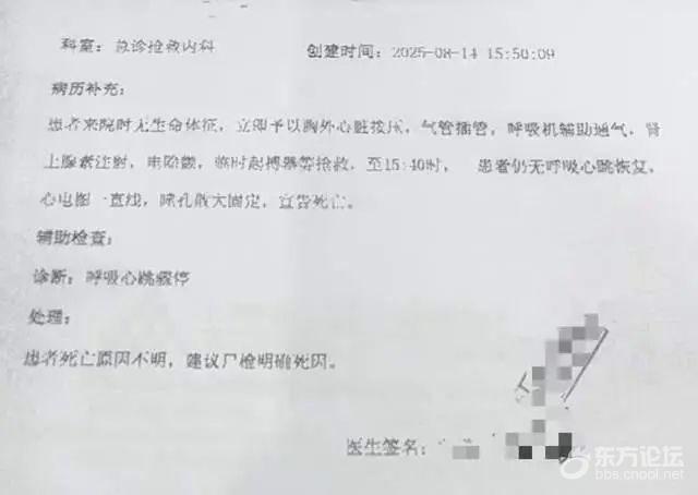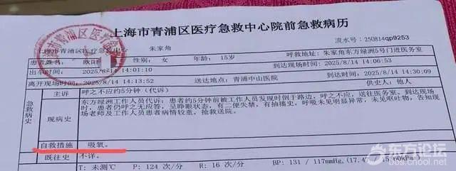 近日,多名网友反映,上海一高中组织学生在东方绿舟景区军训期间,一名15岁女学生去世。 8月22日,记者联系到女孩的妈妈周女士,她讲述了事发经过。 网友反映—— 高一女孩军训期间离世,死因不明 事发当日,上海发布高温黄色预警 有网友发帖称,8月14日下午,上海交通大学附属中学嘉定分校一名高一女生在军训期间倒地,送医后抢救无效身亡。 有网友称女孩系死于热射病,另有网友称女孩系自身疾病去世,还有网友称女孩系猝死。自称知情人士的网友称,事发时系高温天气,学生进行了高强度的训练,女孩感到不适后自行前往医务室,路上晕倒了。 ![]() 对此,有网友贴出疑似有关部门的内部信息显示,8月14日下午3时30分,青浦分局接报一学生在东方绿舟内晕倒,经送医抢救无效死亡,医院初步诊断为心脏骤停。女孩15岁,本周在东方绿舟参加军训。14日下午,该生在返回宿舍途中晕倒。经法医勘察勘验,死者体表未见明显机械性损伤,符合猝死特征。 记者查询获悉,8月14日中午12时40分,“上海预警发布”发布高温黄色预警,最高气温将超过35℃。 家长讲述—— 孩子军训期间送医,抢救无效离世 病历:呼吸心跳骤停,死因不明 女孩妈妈周女士告诉记者,孩子姓欧阳,2009年出生,今年15岁,考入了上海交通大学附属中学嘉定分校,“这是我们当地的名校,她非常优秀,性格也很好。”8月11日,学校组织学生前往东方绿舟景区军训,“我把孩子送到了上交附中嘉定分校,学校安排大巴车送孩子们前往。” 8月14日下午2时许,周女士接到了班主任的电话,对方称孩子进医院了,让赶紧过去。她立即赶往医院,路上再次联系班主任,对方说“你快一点,孩子情况不是很好”。赶到医院后,医生从抢救室走出,称抢救无效。 ![]() 根据医院病历显示,“患者来院时无生命体征,立即予以胸外心脏按压,气管插管,呼吸机辅助通气,肾上腺素注射等抢救,至下午3时40分时,患者仍无呼吸心跳恢复,瞳孔散大固定,宣告死亡。”诊断为“呼吸心跳骤停”,“死亡原因不明,建议尸检明确死因。” 周女士对于孩子的离世悲痛欲绝、难以接受,“她热爱运动,以前参加过校篮球队,还爱打羽毛球,身体素质很好,平日里体育都是满分,怎么会连抢救的机会都没有,就离开了呢?” ![]() 送医之前—— 利用午休时间参加合唱排练 后参加列队训练路上突然蹲下 周女士讲述,事发后,他们通过警方,看到了东方绿舟景区的公共视频,还原了孩子送医前的经历。 根据《军训课程安排表》显示,8月11日,学生抵达营地。8月14日的训练计划为:6时起床,半小时整理内务;6时30分至7时30分,参加升旗仪式;后学生吃早餐;8时15分至11时,进行2小时45分的队列训练;午餐后,12时至下午1时30分,午休或剧场节目彩排。下午2时至4时30分,继续队列训练。 ![]() 她说,8月14日上午,孩子一如往常参加了训练。午饭后,孩子在礼堂参加了合唱排练。按照日程,合唱结束后,孩子要跟着队伍继续排练,“中午的合唱,他们队伍只有3个学生参加。排练结束后,她回宿舍拿了帽子,还遇到过老师。老师说她蹦蹦跳跳,都没问题。” 周女士表示,她在公共视频中看到,孩子拿到帽子后离开宿舍,路上突然蹲下,也就是几十秒时间,周围同学感觉不对劲,上前询问发现她没有回应,便赶紧通知周围老师,“老师抱着她往医务室跑。” 急救经过—— “送医务室后,孩子吸氧观察了4分钟才报120” 《急救病历》:患者呼之不应,二便失禁,有抽搐史 “我认为,孩子送进医务室后,医务室没有采取有效措施。”周女士说,工作人员告诉她,孩子送入医务室后,工作人员给孩子吸了4分钟氧,观察了4分钟,没有做其他急救措施,然后拨打了120急救电话,“医务室门口就有AED,他们没使用。” ![]() 《院前急救病历》显示,患者5分钟前被人发现倒于路边,呼之不应,送医务室。到达现场时,患者仍呼之不应,呈睁眼状态,有二便失禁,有抽搐史。送医途中,呼吸停止,病情危重。自救措施,仅有吸氧。 周女士说,120出车时间为下午2时01分,抵达现场的时间为下午2时07分,离开现场的时间为下午2时13分,抵达医院时间为下午2时30分。 周女士认为,在急救过程中,东方绿舟景区、校方的急救人员没有及时采取有效的急救措施,可能导致孩子错过了抢救时机。 8月14日至19日,周女士一家被安顿在东方绿舟景区的酒店内,但始终没有人主动联系他们。8月19日,她向警方申请尸检,希望搞清楚女儿的具体死因。 等待结果—— 景区、校方未排查急救程序漏洞,给出结论 周女士说,8月19日前后,校方负责人才主动找到她,“他们态度挺好的,称之前是沟通问题,并非回避。孩子是在东方绿舟景区出的事,上海市教委要求景区方面全权主导处理,学校是配合景区处理。” “景区方面至今没有人跟我们沟通,他们的法务人员说要等孩子的尸检结果。我们问了警方,尸检结果需要30个工作日。”周女士说,校方态度很好,却不解决问题;景区态度强硬,让她不知道该找谁,“他们有一批一批的学员,可我们只有一个孩子。孩子没了,我们家天塌了。” “孩子送医务室4分钟,急救人员只采取了吸氧措施,为什么不采取其他急救措施呢?是人员配置不齐,还是没有意识到严重性,亦或是急救程序存在漏洞?”周女士质疑道。 周女士认为,申请尸检是家属希望查明真相。但事发后,校方和景区方面,没有对事发过程中,急救环节存在的问题进行内部自查,给家属一个结论,令