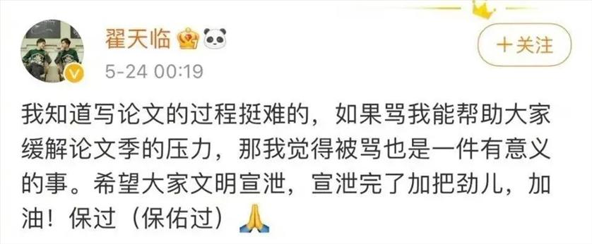 8月20日,有网友发帖称,经过上海艺海剧院,发现演员翟天临最新主演话剧《笑之大学》的宣传海报,疑似复出。据悉,翟天临将出演《笑之大学》中“椿一”一角,演员王耀庆也将出演该角色。 该话剧改编自三谷幸喜同名话剧的电影《笑之大学》,是其代表性的喜剧佳作之一,风靡全球。《笑之大学》已于8月11日全平台正式开票,将于10月2日-10月5日在上海美琪大戏院上演。 公开资料显示,翟天临,1987年2月15日出生于山东省青岛市,毕业于北京电影学院2006级表演本科班,中国内地影视男演员。2019年2月,翟天临因在直播中回答网友提问时,不知知网为何物,他的博士学位真实性受到质疑。 ![]() 随后,每到毕业季、论文季,网络社交平台都会出现一波“声讨”翟天临的声音。2021年5月,翟天临发文回应:“我知道写论文的过程挺难的,如果骂我能帮助大家缓解论文季的压力,那我觉得被骂也是一件有意义的事。希望大家文明宣泄,宣泄完了加把劲儿,加油!保过(保佑过)。” |