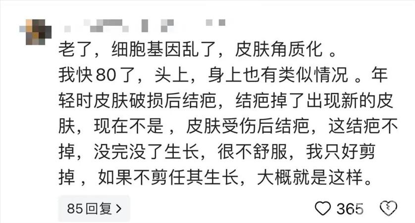 “我头上有犄角……” 《小龙人》是许多80后童年的回忆 其实 在现实生活中 也有“头上长犄角”的人 近日,上海一老人 居然把自己头上的角直接剪掉了! 后果严重! 一场紧急救治 在港沿镇社区卫生服务中心上演 98岁老人头上长“角”? 一剪刀下去……后果严重! 据了解,顾阿婆今年98岁高龄。额部的赘生物已存在多年,直径约三四厘米。她在社区医院住院期间,因不堪其扰便自行将其剪除…… ![]() ![]() 顾阿婆告诉记者,这个“角”剪下来,有一个手指那么长,额头一下子肿了起来。 ![]() 由于顾阿婆年事已高,且伴有基础疾病,额部创面若处理不当,极易引发难以控制的出血或感染,后果不堪设想。 值班医生立即启动应急机制,向院部上报情况。恰逢十院崇明分院普外科专家聂洪鹏当天下沉坐诊,于是社区医院第一时间联系他进行会诊。 聂洪鹏讯速评估病情,在与家属充分沟通后,决定立即实施手术。他精准切除赘生物残余组织,并进行精细缝合。在社区全科医生的密切配合下,手术用了不到1小时便顺利完成。这个原本可能需要转院处理的伤口,就这样在社区医院得到了妥善处置。 不少长寿老人头上都“长角”? 这个赘生物到底是什么? 记者注意到,老人头面部长“角”并非孤例。据人民网2010年报道,河南平顶山鲁山县林楼村,101岁老人张瑞芳的头部左上方长出约5.6厘米长角。 ![]() 张瑞芳老人头部长角。图/人民网 据钱江晚报2022年报道,90多岁的李奶奶,因头上一根10多厘米长的角折断而头部出血,被家人送到急诊室。医生判断是皮角,并为其做了切除及清创处理。 据湖北日报2022年报道,家住武汉的90岁李奶奶,右眼角长出了一个小疙瘩,后逐渐发展成5厘米长的“犄角”,压得她右眼皮抬不起来,严重影响了视力。医生判断,该“犄角”为皮角,由于病损处角质物异常增多而形成突起状角化性皮损,形似动物的角。 ![]() 有网友评论称,在当地老家这被称“长寿角”。 评论区还有一位“近80岁”的网友自称头上、身上也有类似情况,现在皮肤受伤后结疤不掉,“没完没了生长,很不舒服,我只好剪掉”。也有人提醒,奶奶所长角为“皮角,有恶变可能”。 那么这些“犄角” 究竟是什么呢? 医生介绍 这些长在各个部位的“犄角” 被统称为皮角 皮角是很严重的病吗? 对于大多数皮角患者,通过手术治疗能达到很好的效果,所以说皮角不是很严重的疾病,但目前被多数学者认为是一种癌前病变,随着时间的推移,病情可能会出现持续性进展,最终导致癌变,甚至危及患者生命,所以需及时治疗。 皮角是如何形成的? 目前研究发现,皮角的形成与多种因素相关,包括但不限于日晒、辐射以及遗传因素。其中,紫外线的长期暴露和慢性炎症刺激被认为是主要诱因。尤其是陕北地区位于黄土高原,因日照时间较长、气候干燥,使得皮角的发病率较高。大多数的皮角病无明显症状,但有时会伴随瘙痒或疼痛。 目前为止,对于皮角的药物治疗还没有任何的特效药能够彻底根治。通常情况下用药的目的是改善相关症状,例如,皮角继发感染出现疼痛时,可以外用抗生素软膏,进行抗炎治疗。鉴于皮角被多数学者认为是癌前病变,早期发现并治疗显得尤为重要。局部手术切除是最有效的治疗手段,切除的皮损进行病理检查,明确有无癌变,如病理提示恶变则需进一步诊治。 皮角虽非严重疾病,但若放任发展可能会导致恶性病变,甚至危及生命,应引起我们足够重视。皮角的发生与我们的生活方式密切相关,因此在日常生活中要注意: 1.尽量减少长时间的日晒,特别是在烈日下,外出时可打遮阳伞或佩戴遮阳帽,并涂抹防晒霜以减少紫外线对皮肤的损害。 2.保持皮肤清洁和良好的个人卫生习惯,避免患处摩擦和损伤,以防皮肤感染。建议使用低刺激性化妆品,并做好日常皮肤护理,及时补充皮肤水分。 3.皮角常在其他皮肤病的基础上发展,因此皮肤上出现类似病症状,应及时就医,避免不必要的揉搓等刺激。对于40岁以上的中老年人,应定期到正规医院进行皮肤检查,及时发现潜在的异常变化,以便早发现、早治疗。 |