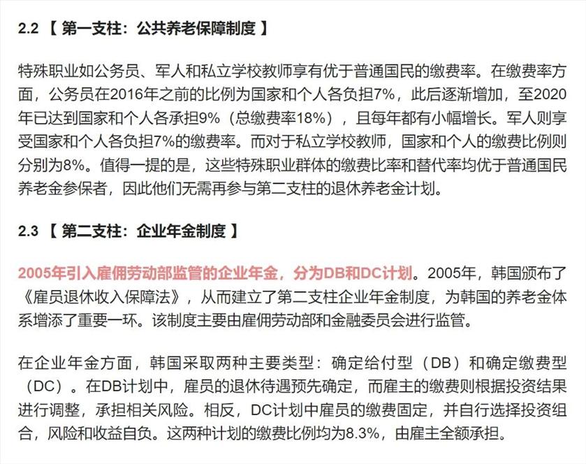 首先,他们决定增加社保来源,2005年韩国颁布了《雇员退休收入保障法》,建立了社保第二支柱。