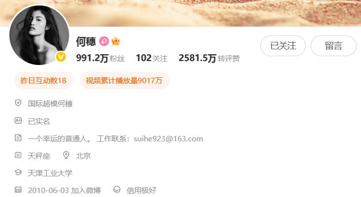 8月27日,话题#疑似何穗退圈# 登上热搜第一,引发关注。 ![]() ![]() ![]() 公开资料显示,何穗,1989年9月23日出生于浙江省温州市,毕业于天津工业大学,中国内地女演员、模特。 2006年,何穗报名参加了第十二届中国模特之星大赛并获得冠军,从此走上模特的道路;2010年9月,在米兰2011春夏时装周上,何穗出场17次惊艳时装界;2011年11月,在全球模特排行榜中,何穗排名第30位,正式迈入国际超模的行列。同年,何穗首次登上维密秀台,并多次为国际大牌走秀。曾出演电影《何以笙箫默》《飞驰人生》等。 |