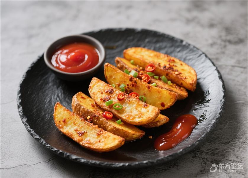留 1 勺炸土豆的底油,小火炒蒜末 10 秒出香(防焦苦),倒土豆块中火翻炒 1 分钟裹蒜香。关火后加 1 勺辣椒粉、半勺花椒粉、适量盐(提前腌过,盐减量),喜欢孜然味加半勺孜然粉,翻炒匀后撒葱花、香菜碎、白芝麻即可。