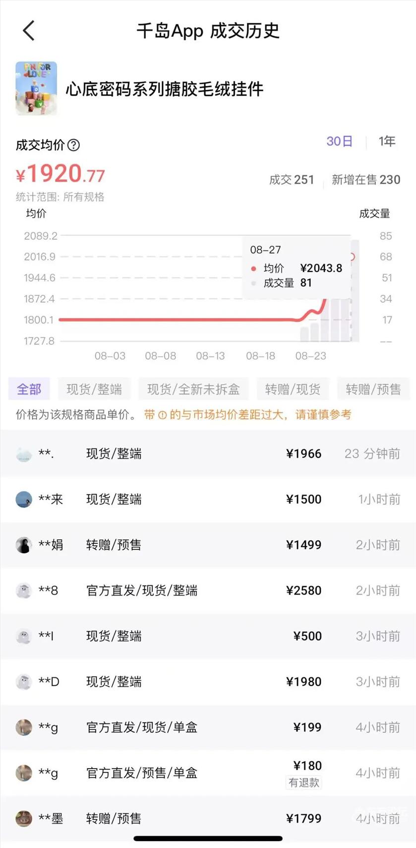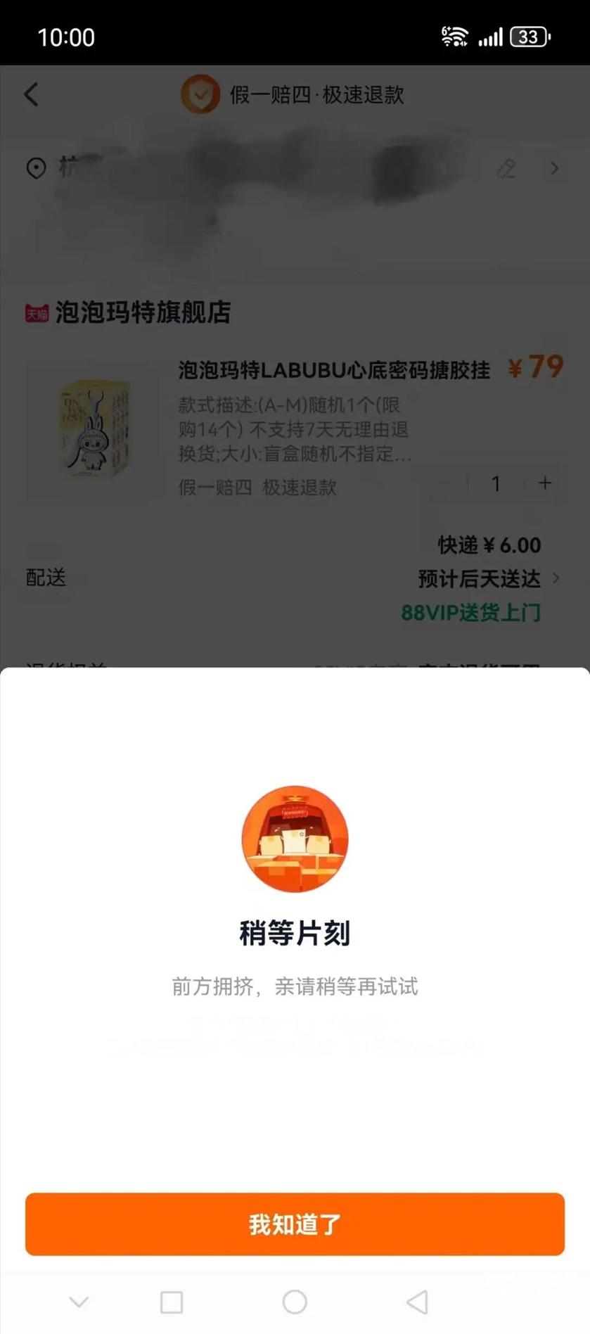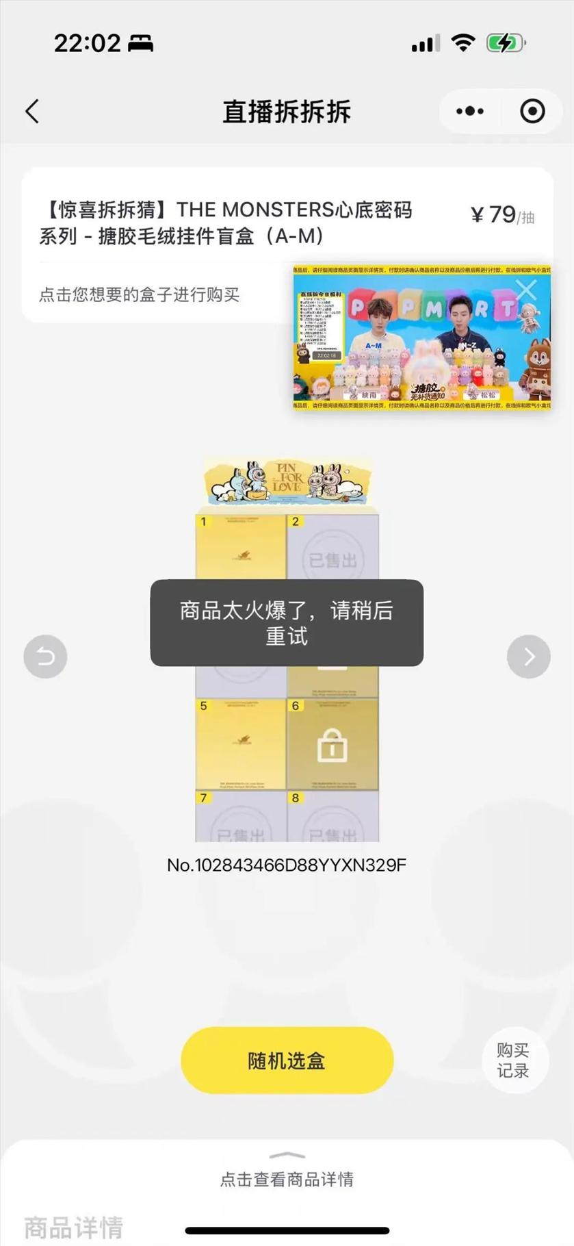 8月28日晚10时,泡泡玛特新品THE MONSTERS心底密码系列-搪胶毛绒挂件盲盒(迷你Labubu)正式开售。话题#labubu#冲上热搜第一。 ![]() 本次售卖的新品迷你版LABUBU是搪胶毛绒挂件盲盒,单个盲盒售价为79元,整套售价1106元。产品分为A/B两端,各含14个常规款,1个隐藏款,常规款概率为1:14,隐藏款概率为1:168。 ![]() 图片来源:泡泡玛特官方小程序 潮新闻记者也卡点参与了抢购,当晚,泡泡玛特小程序销售页面显示“太火爆啦,请稍后重试”,天猫旗舰店、抖音商城等网购平台付款页面,也出现了长时间卡顿的情况,提示当前排队人数太多,请稍后重试,开售后不到5分钟,两款迷你Labubu盲盒链接已显示售空。 ![]() 泡泡玛特天猫旗舰店截图 ![]() 泡泡玛特官方小程序截图 泡泡玛特官方小程序截图 10分钟后,得物APP相关产品购买页面显示,79元的MINI版LABUBU已超过1.4万人购买成功。 据天猫泡泡玛特旗舰店显示,当晚开售的迷你版LABUBU常规款已售30万+,相关商品均显示“已下架”。 不过,也有很多人晒图买到了。 ![]() ![]() ![]() 另据媒体此前报道,还未发售之前,迷你版LABUBU二手平台的“预售单”已先一步火热。 在二手平台,已有不少卖家提前发布代抢订单,且价格不一,单只迷你版LABUBU价格最高已冲上300元/个,部分卖家开出的一整套(14只)的代抢费用甚至达到2699元,较官方原价已翻倍。 与此同时,在潮玩二手交易平台已有700余件迷你版LABUBU“在售”,已成交251件,截至发稿,成交均价为1920.77元。而在28日下午,有用户以2580元成交整端。在平台“求购”的用户出价中,用户愿意为整端盲盒付费的价格在1300元至2150元不等。 ![]() 隐藏款更是被炒出“天价”。页面信息显示,单个盲盒“隐藏款-爱心”原价79元,在售的最低价为679.5元,而在8月25日,更有两位用户分别以1188元和1100元成交,单个盲盒也产生了千元加价交易。“迷你版LABUBU”分A/B两组的玩法下,隐藏款概率低至1:168。 据报道,许多黄牛链接写上了“涨跌不鸽”,但事实上,泡泡玛特首批对迷你版LABUBU的放量情况、对黄牛的防范情况、市场接受度以及预售计划等,都可能影响到二手平台的价格,迷你版LABUBU的二手价也是一个待开启的“盲盒”。 事实上,这款新品掀起抢购热潮,并非意外。 早在8月20日泡泡玛特的中期业绩发布会上,创始人王宁就官宣了这款迷你版LABUBU,并称相信它会成为超级爆款。“以前可能大家是挂在包上,可能从下周开始,大家甚至可以挂在手机上,它的使用场景会更多。”王宁表示。 2025年上半年,泡泡玛特交出了一份颇为亮眼的成绩单。财报数据显示,公司上半年实现营收138.76亿元人民币,同比去年增长204.45%,归属于母公司股东利润达45.74亿元,同比增幅高达396.49%,实现跨越式增长。 分区域来看,中国市场贡献营收82.83亿元,同比增长135.2%;亚太市场收入28.51亿元,同比大增257.8%;美洲市场则实现爆发式增长,收入达到22.65亿元,同比增长1142.3%。在IP方面,LABUBU所属的The Monsters系列表现尤为强劲,实现48.14亿元收入,占公司总营收的34.7%,成为公司业绩增长的重要动力。 你抢到LABUBU了吗?根据官方信息,该系列将于今天(8月29日)在线下门店发售,大家不妨去线下碰碰运气。 |