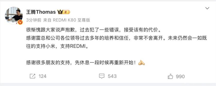9月8日,小米公司发布内部公告称:中国区市场部员工王腾,泄露公司机密信息,且存在利益冲突等严重违规违纪行为。根据《小米集团员工违规违纪行为处理办法》《小米集团诚信廉洁守则》等制度规定,公司决定给予王腾辞退的处分。 小米在内部邮件中表示,对违规违纪行为坚持“零容忍、全覆盖、无禁区”态度,并依据《小米集团员工违规违纪行为处理办法》等相关规定作出此次处分决定。委员会呼吁中国区干部引以为戒,心怀敬畏之心,坚守公司制度红线。 8日深夜,王腾在微博回应称:很惭愧跟大家说声抱歉,过去犯了一些错误,接受该有的代价。感谢雷总和公司各位领导过去多年的培养和信任,非常不舍离开。未来仍然会一如既往的支持小米,支持REDMI。感谢很多朋友的支持,先休息一段时候再重新开始! ![]() 根据王腾微博认证,王腾原为“小米中国区市场部总经理、REDMI品牌总经理”。目前,王腾微博认证已经取消。 |