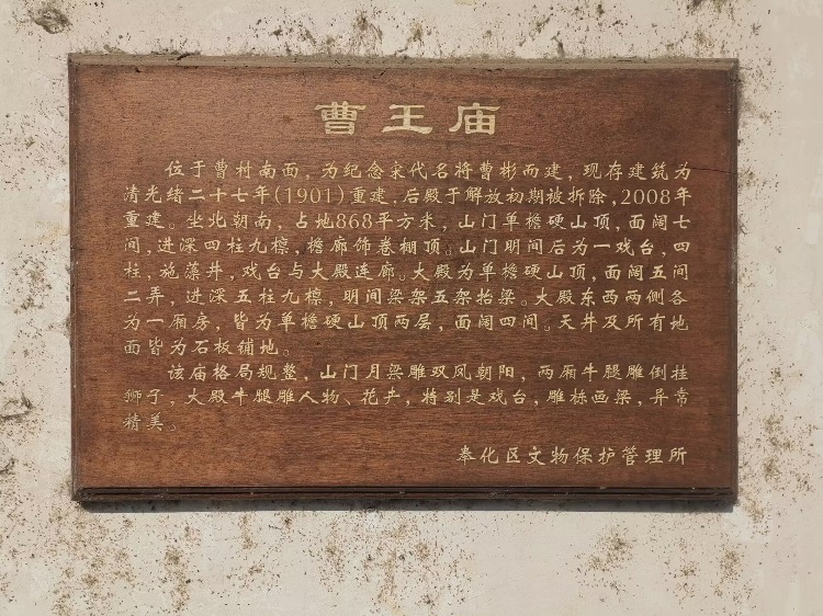 在我们常规的认知里,一个名为曹村的地方,村民大概率是姓曹的。然而,位于宁波市奉化区裘村镇的曹村,却打破了这种惯性思维,这里的村民姓庄。 那为什么叫曹村,村民却姓庄呢?这就要追溯到庄氏始迁祖庄翊忠。他在大唐宣宗朝时任枢密院副使,退休后还被赠银青光禄大夫,居住在姑苏(今苏州)曹浦。 晚唐时期,黄巢起义,为避战乱,乾符六年,庄翊忠带着家人、塾师吴思、家僮阎氏等,从姑苏曹浦出发,历经漂泊,航海至象山港北岸湖头渡登陆,最后在鄞阳乡后杨山麓定居。为了纪念旧地曹浦,这个新的家园便被命名为曹村。 庄翊忠和他同行的吴思、阎氏三人,在这里由西向东分别建立了曹村、吴江泾村、阎村三个村落,并各自发展出独特的村落文化。 曹村作为唐末古村,有着1100多年的历史。这里民风淳朴,文化底蕴深厚,人才辈出宛如繁星闪烁在历史的天空。 翊忠公育有二子,长子庄琦能文,担任明州州学助教,次子庄敦能武,赐爵镇南侯。 曹村,几经岁月变迁,从秦时的鄞阳乡,历经忠义乡、曹吴乡等不同归属,最终并入裘村镇。 现在的曹村庄氏人丁兴旺,繁衍有曹一、曹二、曹三、曹四4个自然村。但随着时代的发展,曹村的民居改动较大,很多古老的建筑已消失在历史的长河中,只留下曹王庙、维新桥、三节堂、防风林古树群等古迹,它们仿佛是狐独的守望者,默默地诉说着往昔的故事。 建于清光绪年间的维新桥,为一座单孔石拱桥,南北向横跨在村口的曹溪之上。 位于村东的防风林古树群,由15棵树龄在135年以上的古树一字排列,以樟树为主。 曹王,即宋初第一良将曹彬,被追封为济阳郡王后,故称曹王。 |