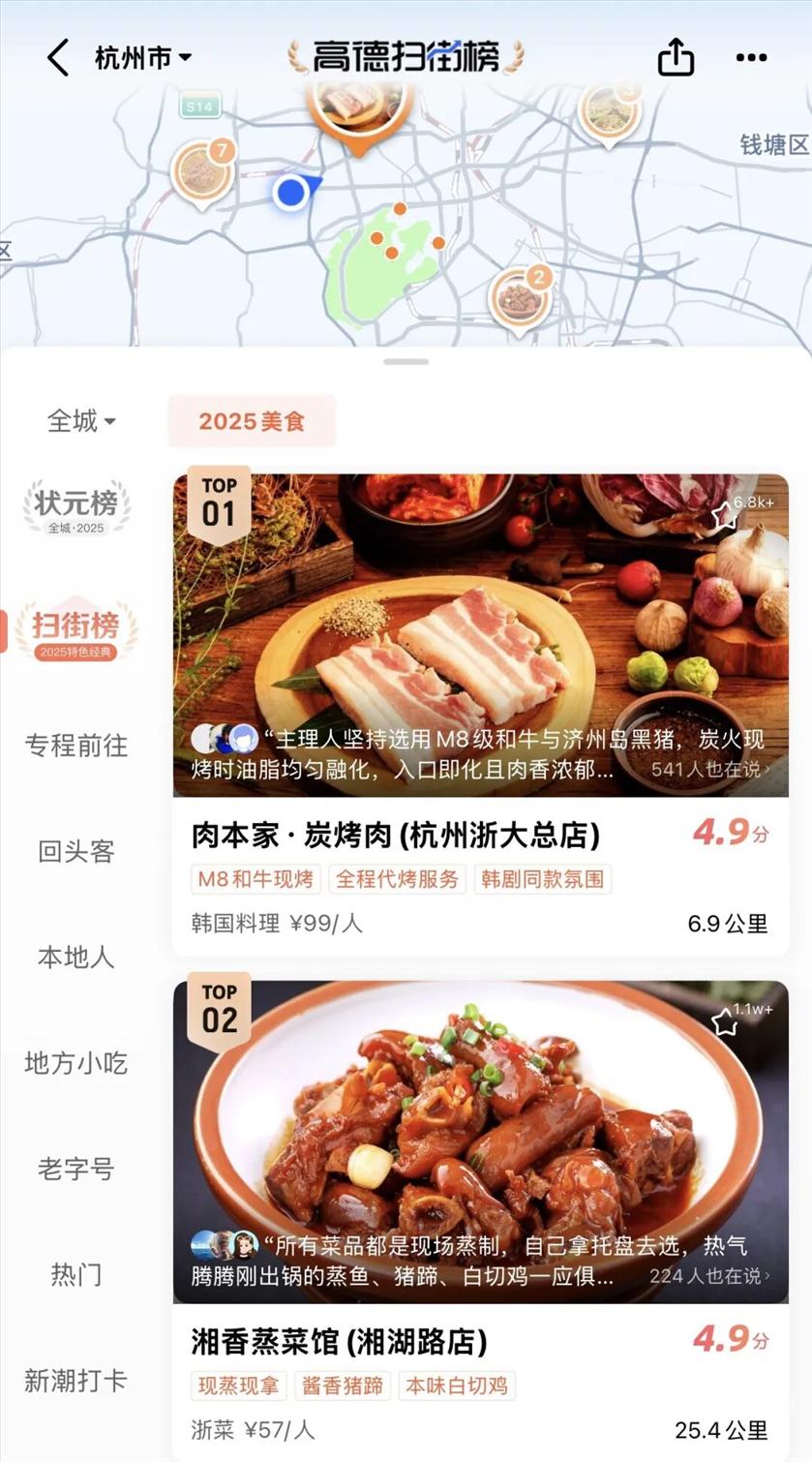 “高德扫街榜发布会”在阿里巴巴杭州西溪园区举行。 发布会上,阿里此前网传的重磅业务也正式官宣,即上线“高德扫街榜”。 ![]() 高德扫街榜发布会现场。 基于用户行为产生,称“永不商业化” 记者注意到,高德扫街榜已在高德APP首页最重要的位置呈现。 根据高德扫街榜页面信息,扫街榜分为“状元榜”和“扫街榜”两大类——“状元榜”为年榜,每年更新一次,包含餐厅、景点、酒店品类;“扫街榜”为日榜,每日更新,主要以餐厅为主。消费者可根据上榜店铺的全年热度值、综合评分等进行消费决策。 ![]() 高德扫街榜页面。 在此基础上,高德扫街榜推出很多独有的特色榜单。 比如,“专程前往”榜单,即指用户愿意花费一定的时间,跨越一定的距离去往一家店铺。这代表着消费者愿意为这家店支付更高的时间和经济成本。 再如,回头客榜单,即多次到访同一家店,代表了对店铺的长期肯定。此类店铺通常也会得到更高评分和推荐。 ![]() 高德扫街榜发布会现场。 据了解,高德扫街榜纳入了用户的行动指标,将真实的“导航到店行为”与评价反馈结合起来,避免了常规榜单容易被刷分、注水的问题。 “扫街榜的商家综合评分,纳入了导航、搜索、到店、收藏等真实行为,在此基础上检验评论的真实性、专业度、时效性、内容质量等维度,再通过AI模型驱动计算得出分数,成为扫街榜的排名依据。”高德扫街榜产品经理李刚介绍。 据介绍,扫街榜的榜单评分主要基于两部分数据构成——行为、信用。 “行为”是指包括导航、搜索、到店,以及多次前往、专程前往等真实行为,体现多维度的“用脚投票”; “信用”则是利用AI能力提升识别和过滤虚假信息,再通过引入芝麻信用体系,让高德扫街榜的评价信用体系能够结合用户的信用等级,进一步提升评价可信度。 ![]() 高德扫街榜发布会现场。 ![]() 榜单评分体系。 发布会上,高德首次披露,目前,高德地图覆盖全国超700万个餐厅点位,每天有1.2亿次生活服务相关搜索,导航前往1300万个生活服务目的地。其中,高德扫街榜已覆盖全国超300座城市的160万个线下服务商家,包括超87万家餐厅、23万家酒店、近5万个景区等。 高德地图CEO郭宁在发布会上宣布高德扫街榜永不商业化。据称,该榜单也是全球首个基于用户行为产生的榜单。 ![]() 发放超10亿元补贴,鼓励线下消费 扫街榜发布当天,高德宣布推出“烟火好店支持计划”,通过三方面大力度补贴,鼓励用户到店消费,助力烟火小店客流、交易的双增长。 出行补贴方面,高德地图针对出发地或目的地是线下商家的用户,发放价值2亿元专属到店出行补贴券包,包含公交地铁补贴、打车券、加油券等,补贴用户出行成本。 交易补贴方面,高德地图将发放9.5亿元消费券,鼓励用户前往烟火好店体验优质服务,包含到店优惠券、招牌菜折扣等,所有成本由平台承担。 高德还将通过首页AI推荐、搜索热词推送、导航语音播报等方式,每天为优质烟火小店提供5000万流量的精准曝光。同时,提供3000万元平台激励,广泛邀请行业达人帮助小店制作优质推广内容。 高德扫街榜还发布首份“烟火小店榜”。首批上榜的2962家烟火小店覆盖全国61座城市。其中,有几代人传承的深巷老店,有家庭式经营的夫妻暖心小店,也有不靠流量只靠口碑的好店。 据悉,高德扫街榜“烟火小店榜”将陆续覆盖全国更多城市。 ![]() 高德扫街榜上的“烟火小店”。 此前市场传言称,阿里即将发布重磅业务,或与团购、高德相关。受此影响,9月8日至9日,阿里在美股市场连续大涨。9月9日,阿里港股收盘涨3.35%,市值一日增加近900亿港元。 |