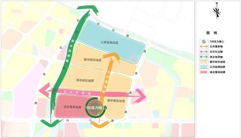 鄞州资规部门昨日(10日)公示《宁波市鄞州区主城北片区城镇05单元G街区控制性详细规划修编》规划草案。 此次规划的这个街区,即省首批未来社区试点全拆重建类项目之一、宁波中心城区更新改造的重点区块——白鹤未来社区。 具体规划修编范围,东至甬港南路、南至兴宁路、西至前塘河、北至新河路,总用地面积约44.21公顷,规划人口约0.95万人。 秉持“延续社区记忆,体验智慧生活”的理念,规划明确这个街区的功能定位为:浙江省未来社区典范、都市智慧生活街区。 以未来社区“一统三化九场景”为指引,在传承社区记忆、完善设施配套、优化社区治理的基础上,规划打造“一心三轴五组团”的总体空间结构。