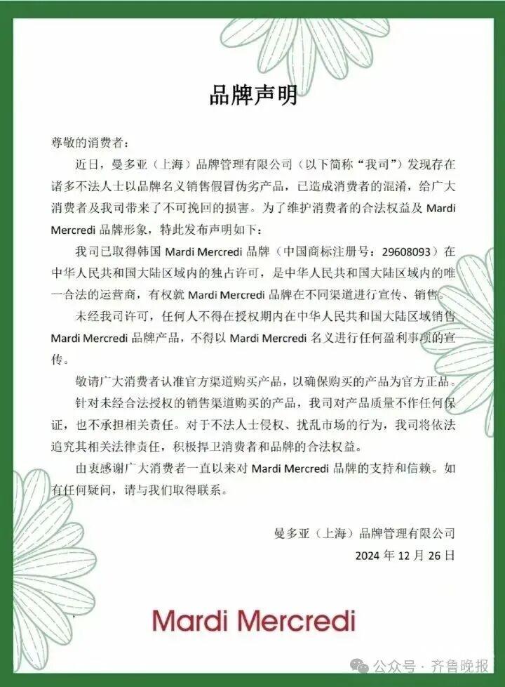 近期,有网友在社交平台上发帖称,韩国时尚品牌Mardi Mercredi将要退出中国市场,国内的门店都会关闭,目前已经有多个城市的门店在进行清仓活动。 ![]() 该品牌的中国代理商曼多亚(上海)品牌管理有限公司(MANTOVA,以下简称“曼多亚”)回应称:“目前的撤柜主要是因为部分店铺经营调整,集团已推出更多新的品牌,比如Raive和Rest&Recreation,之后也会把更多的集团资源投入到新品牌的建设中。” Mardi Mercredi是韩国设计师朴和睦与其妻李秀贤于2018年共同创立的时尚品牌,于2022年正式进入中国,在江苏、上海、南京、北京、杭州、济南、青岛等城市的核心商场都有门店。 Mardi Mercredi以前算是个“小众潮牌”,后来凭借标志性的小雏菊logo火遍全网,该品牌的服饰设计看似简约,但却有着干净利落的整体风格,搭配色彩亮眼的标志性元素——小雏菊logo与腊肠狗印花,成功圈粉了不少追求个性穿搭的消费者。 真正让Mardi Mercredi实现“破圈”的,是韩国人气艺人的穿搭助力。IU、金艺琳、李宣美等知名艺人纷纷上身其单品,这个原本小众的品牌迅速撕掉“小众”标签,完成向大众潮牌的蜕变。 进入中国市场后,Mardi Mercredi陆续登陆多座城市,开店速度非常之快,而且几乎每个城市的选址都在标杆购物中心。 不过,中国市场一直存在大量Mardi Mercredi假冒品,近年来还有仿冒品牌在线下开出多家门店。曼多亚曾在2024年底发布声明,称其为Mardi Mercredi在中国大陆地区的唯一合法运营商。 ![]() 9月13日,记者发现位于杭州市湖滨in77E区1楼的Mardi Mercredi门店,门店内的衣服货架上有“全场清货”的标识。 ![]() 记者询问店员,得到了明确的回复,门店确实是接到通知要关闭了,是品牌统一管理的,目前店内已经在全场清仓甩货。店员表示还没有接到具体的闭店时间要求。据悉,杭州这家Mardi Mercredi门店是在2023年9月20日开业的,目前开业还不到两年。 ![]() 除了杭州的门店,青岛、沈阳、南京等城市的Mardi Mercredi门店也都传出了闭店消息。该品牌在宁波也有门店,位于阪急,目前尚在营业。 ![]() ![]() |