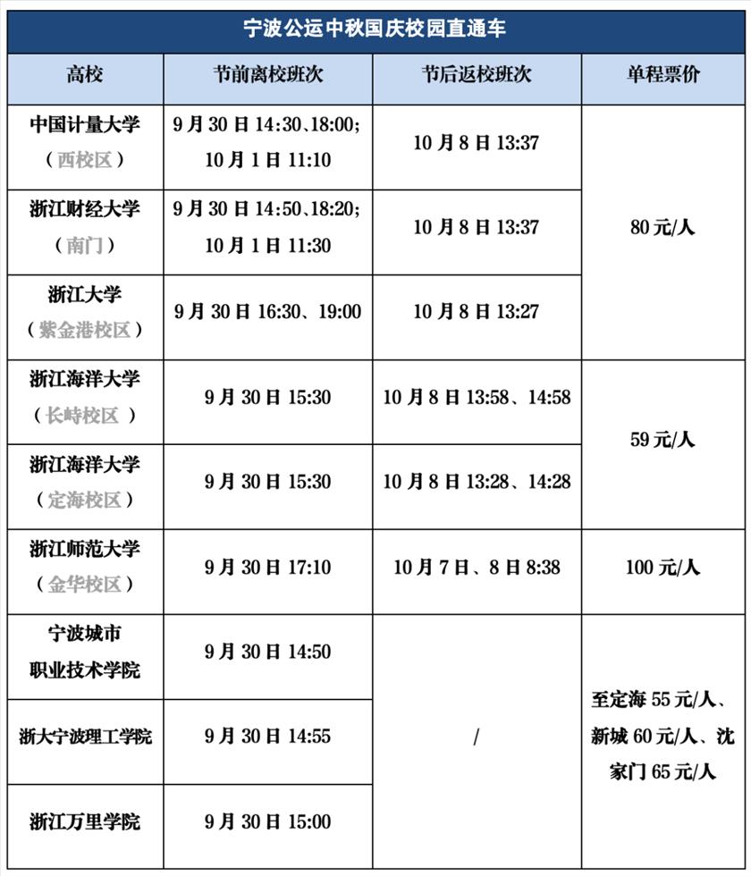 到渔港码头买海鲜、直达“浙BA”赛场观赛、放假了直接把学生从校门口接到宁波,假期结束再原路送回……记者从宁波公运集团了解到,从9月21日起,又有一批满足市民出行需求的惠民直通车将集中推出,继续以普惠与多元,为市民旅客提供便捷舒适的出行服务。一起往下看: ![]() ![]() ![]() ![]() 目前,东海已全面开捕,奉化莼湖街道桐照码头的渔市场迎来供销旺季。为方便市民直达渔港采购新鲜海鲜,9月20日(本周六)起,宁波公运集团推出2条桐照海鲜采购直通车专线: ![]() 9月20日往返,去程宁波体育中心东门6:50发车,宁波鼓楼石油大厦7:10发车,约1.5小时直达桐照鱼市场,10:00回程;往返19.9元。 ![]() 9月20日往返,去程宁波体育中心东门13:30发车,宁波鼓楼石油大厦13:50发车,约1.5小时直达桐照鱼市场,17:00从桐照鱼市场集合前往莼湖滨海商业广场,逛吃商业街,19:30返程;往返29.9元。 ![]() ![]() 国庆假期临近,省内“校园直通车”继续开行,为在杭州、舟山、金华等地高校就读的宁波学子,和在宁波高校就读的舟山学子,提供“校门口”与“家门口”的便捷接送服务。具体安排是: 杭州、舟山高校开通往返宁波汽车南站专线,金华高校开通往返宁波汽车中心站(客运中心)专线。 在宁波就读的舟山学子,从浙大宁波城市职业技术学院公交站、浙大宁波理工学院公交站、浙江万里学院东公交站发车,直达定海、新城、沈家门。具体车次时刻及票价如下: ![]() ![]() ![]() 此外,本周日晚,“浙BA”宁波队将客场对阵嘉兴队,当天,“浙BA”观赛直通车将继续开行,去程13:30从宁波体育中心发车,13:50继续从宁波鼓楼石油大厦发车,约2小时直达嘉兴秀湖全民健身中心,21:30回程。票价方面,去程39.9元,回程39.9元,往返联票69.9元。 以上车次旅客可通过“宁波公运”微信服务号的“校园直通车”、“赛事直通车”或“惠民旅游巴士”板块查询详细信息。另外,10月2日至7日景区直通车也将陆续上架。 |