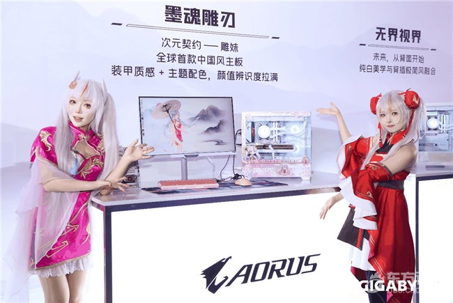 整机美学与产品矩阵的“视觉盛宴” 在产品展示区,技嘉以产品墙和MOD整机等形式陈列多套产品,其中,技嘉B850M AORUS ELITE WIFI7 ICE-P “雕妹” 主板以国风祥云纹路设计,成为现场 “颜值爆款”;技嘉X870I AORUS PRO ICE 迷你冰雕则凭借纯白 ITX 板型,将为小型主机玩家的优质选择。