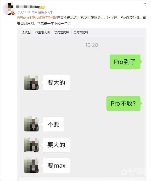 9月19日,苹果iPhone 17系列机型正式开售。多地苹果旗舰店门口都场面火爆。 记者体验真机,备受期待的轻薄旗舰air延期。新款iPhone屏幕更大且足够轻薄,两台放置在一起打开有折叠屏的感觉,此前也有猜测,超薄iPhone是为苹果折叠屏手机铺路。 ![]() 早上7点45分,距离iPhone 17系列正式开售还有15分钟,苹果北京三里屯Apple零售店门口照例排起长队,现场约有200来人。 这是自iPhone掀起智能手机市场大变革以来,果粉之间维系已久的一种仪式。队伍的长短、到店的时间,某种程度上也在印证这一届iPhone产品的火爆程度。 ![]() 记者从现场了解到,今天到店的多数消费者下单的都是iPhone 17 Pro系列。问及换机原因,影像能力升级和最新发布的橙色是提及最多的两个因素。 ![]() ![]() 早上不到8点,苹果上海南京东路旗舰店门口,前来领取iPhone 17系列手机的顾客排起了长龙,记者目测现场人数超过百人,首日来取机的顾客多为购买iPhone 17 Pro和Phone 17 Pro Max。颜色上,今年新增的橙色和传统的银色更受偏爱。 ![]() 一位黄牛对记者表示,之所以256G版愿意给出更好价格,是因为要的人多,其他款“卖不起来价”,回收也比较谨慎。 iPhone 17 Pro被黄牛拒收:卖的人多,货太多了 有黄牛现场收购首批新机。今早,某地苹果店门口还发生了有意思的一幕。多名黄牛表示,今年最抢手的是Pro Max型号,鲜少有人向他们预订Pro机型。针对橙色iPhone 17 Pro Max的512GB和1T两个不同存储版本,黄牛分别加价1000元和1500元。多个黄牛称:“今年加价不多,因为(苹果)货太多了。”与此同时,多数黄牛表示iPhone 17不加价。 当天发售有多名黄牛表示拒绝回收iPhone 17 Pro机型。有黄牛表示橙色和银色的256GB和512GB版本的iPhone 17 Pro Max加价500元回收、1TB版本加价350元回收,但Pro机型、蓝色机型、2TB机型和基础版机型都不收。另一位黄牛表示,基础版和Pro机型最多加200元回收,Pro Max机型最多加价400元,“卖的人多,货太多了。” ![]() ![]() 一位女士现场从代抢人员手中加价1000元收购了一台512GB的橙色iPhone 17 Pro Max,她表示是因为儿子想拥有第一批iPhone 17新机,但抢不到,只能收别人的。对于首批新机1000元的加价幅度,她认为很值。 现场的“黄牛”称:“到现在也没看到哪个用户拿着2TB版(从苹果零售店)出来,如果有,我愿意回收,但是加不了多少钱,普通用户不会买这么大内存(的版本),官方价就17999元了,太贵了。” ![]() 五好青年张越超: 都2025年了,还是会有人加价买手机,不理解。 啊呜小猪: 想不通这东西还要抢,还有人加价买。 随缘66918: 家长的虚荣心导致孩子的攀比心更强。 熊猫吃竹子丶: 为什么要加价买,过一个月不就双十一了嘛。 ![]() 9月19日,iPhone 17系列新机正式开售。首发不久,有第一批拿到新机的网友已开启吐槽模式,在社交平台上称新机刚开箱就出现划痕、凹陷等品控问题。有网友表示,1万多的新机连数据还没传,就发现iPhone 17 Pro银色款边框出现磕痕瑕疵,已联系客服想要换货。 ![]() 对此,苹果客服解释称,iPhone17系列边框材质为铝金属,相较于钛金属偏轻软一些,碰一下可能会出现凹陷。若用户开箱出现划痕等问题,建议用户拍摄开箱视频,苹果支持官方渠道14天之内退换货。品控这块苹果一直坚持高标准,开箱出现瑕疵是极少数情况,苹果会做好售后。 ![]() 对网上的划痕和磕碰情况,苹果店店员表示,今年改为了铝材质,所以磕痕或者划痕相比之前来说会更明显一些,同时表示之前的手机也会有磕痕,“这个是正常使用痕迹,平时需要注意保护。”同时有店员表示,现在拿到手的顾客都是第一批,类似的问题还没有正式的通知或者反馈,但是这样的情况也比较难避免。 ![]() |