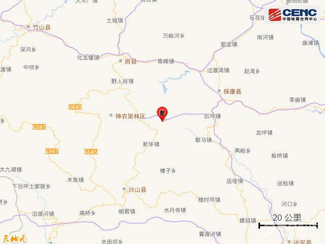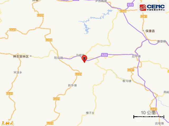 附近村镇:本次地震周边5公里内的村庄有马桥街村、孙家庄、桃坪河村、安家湾村、大横溪村、两河口、张湾村、横溪、店池岭、凉风尖,20公里内的乡镇有马桥镇。 周边县城:震中距保康县35公里、距房县42公里、距兴山县45公里、距南漳县84公里、距竹山县89公里,距神农架林区26公里,距西安市340公里。 震中地形:震中5公里范围内平均海拔约1018米。 历史地震:根据中国地震台网速报目录,震中周边200公里内近5年来发生3级以上地震共10次,最大地震分别是2025年9月22日在湖北襄阳市保康县发生的3.6级地震(距离本次震中0公里)和2023年1月17日在湖北襄阳市南漳县发生的3.6级地震(距离本次震中100公里),历史地震分布如图。 |