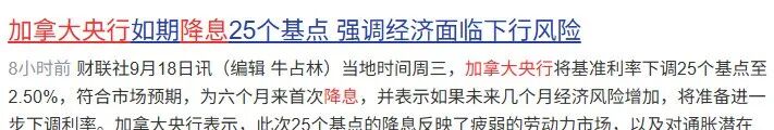 在9月12日,发改委发布的《国务院关于今年以来国民经济和社会发展计划执行情况的报告》中,明确提出: 做好下半年经济工作,保持政策连续性稳定性,增强灵活性预见性,加快稳就业、稳企业、稳市场、稳预期,推动相关举措落地见效。落实落细更加积极的财政政策和适度宽松的货币政策,充分释放政策效应。 多位专家分析认为,预计三季度有望先行推出一揽子货币政策,货币宽松力度会超出市场预期。下半年或继续降息降准,其中降息幅度可能达到30个基点,降准幅度有可能达到0.5个百分点。 ![]() 美联储降息25个基点!降息通道被打开 上涨,美联储决定将联邦基金利率目标区间下调25个基点,至4.00%-4.25%之间。 这波大幅度降息,意味着中国降息空间被打开。 ![]() 除了美联储降息外,9月17日,加拿大央行宣布将利率目标下调25个基点至2.5%; ![]() 图源:财联社 可以说,无论是从国内还是国外的最新消息来看,进一步降息信号强烈! 而且据多方消息显示,央行或将再次实施降准降息政策,时间点或在三季度末前后。 有业内专家预测,若央行择机降准降息,首套房贷利率有望进一步迎来下调,一起期待吧。 |