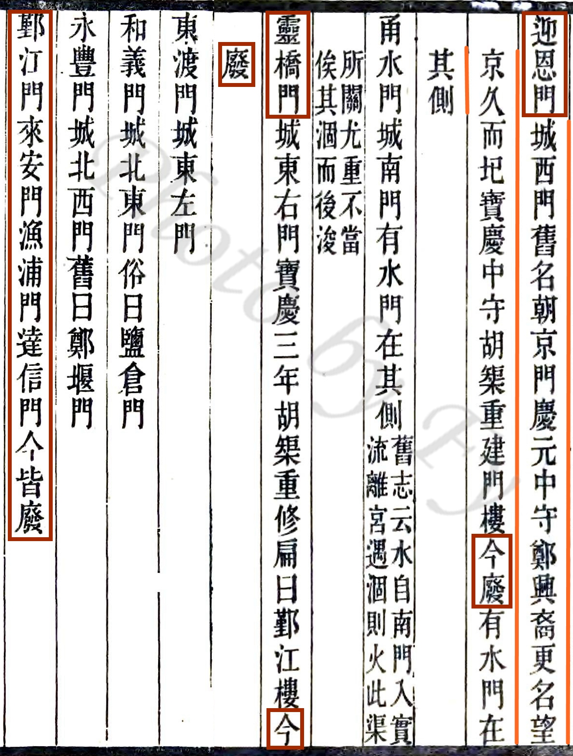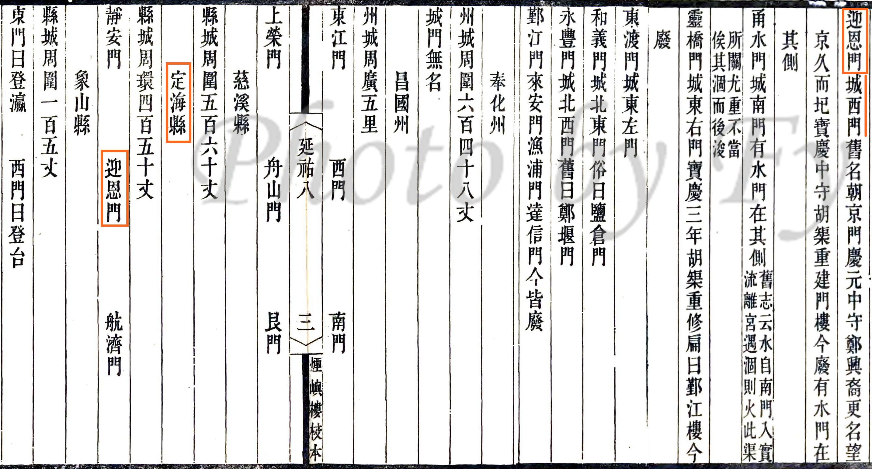 ![]() 说是考题,其实是整个宁波罗城西门的称呼变革历史,过程挺魔幻,让人意想不到,它曾两度称为“朝京门”,又两度称为“望京门”,当中还有个捉摸不透的“迎恩门”。 ![]() 历史上,许多官员包括从京城来的官船,都是由西塘河从西门入城,此处也是宁波学子入京赶考的必经之地。同时鄞西平原的物产有部分经此运入宁波,外地海运至宁波的物品也有部分经此流向鄞西内地。繁忙的水运造就了西门的繁华。 ![]() 西门在拆除前称“望京门”,拆除后铺建的马路就称“望京路”。现望京路上建有“望京门城墙遗址博物馆”,馆里展示有2016年以来两次考古挖掘发现的晚唐五代至民国时期的明州罗城(望京门段)的城墙遗址和部分出土文物。奇妙的是本人曾在这望京门遗址上奔跑了三年,缘分哈! ![]() 那么,“望京门”这个称呼是何时而来呢?它“望”的是哪门子“京”呢?西门除了“望京门”,还有个旧称为“朝京门”,它又“朝”的哪门子“京”?另外,还有一个称呼“迎恩门”,这又从何而来呢? ![]() 开头是对南宋罗城的介绍“周回二千五百二十七丈,计一十八里。奉化江自南来限其东,慈溪江自西来限其北,西与南皆它山之水环之。唐末刺史黄晟所筑。” ![]() 我们重点看下西门的介绍“西曰望京门,有水门通漕运,旧名“朝京”。庆元中,守郑興裔更名。久而圮,守胡榘重建……”非常明确,“望京门”是南宋庆元年间,由知州郑兴裔更的名。(图来自网络) ![]() 庆元是南宋第七位皇帝宋宁宗赵扩登基后启用的第一个年号,使用时间为1195年至1201年2月5日,历时6年。赵扩还是皇子时,曾任明州知州,1195年登基后,任命郑兴裔为明州知州,因明州是其潜邸,又升明州为庆元府。因为西门连接淅东官道,是进京或从京城来的必经之门,所以这应该就是郑兴裔在未修缮罗城的情况下,独独改了西门称呼的原因吧,毕竟身为四朝元老那政治敏感度还是很高的。 ![]() 你没看错,就是唐宋八大家之一的曾巩,不过他在明州只在任4个月。曾巩修建罗城亦可见《曾巩集》。 ![]() 各类古籍都未具体记载“朝京门”,鉴于郑兴裔更名“望京门”前,“朝京门”是罗城西门最早的称呼,而唐代建了众多城门,想必总会取名,因而旧名“朝京门”为晚唐西门的称呼可能性很大。那么它“朝”的是“京”就是唐朝的京师长安。 ![]() 宝祐年间,沿海制置大使丞相吴潜又对罗城其中的六座城门进行了修缮,并于开庆元年(1259年)夏完工,唯独少了对市舶司门(来安门)的记载。因此,宁波罗城从十门逐渐变成六门在南宋末期实已成形。(图片来自网络) ![]() 与此同时,吴潜还把三座名称浅俗的城门更了名,北门下卸(盐仓门)改为和义门,西北门郑堰门改为永丰门,西门望京门改回朝京门。 ![]() 不过,出现了一个新的论点“唐长庆元年(821年)刺史韩察移州治于鄮县,治撤旧城而新之,唐末黄晟为州刺史增筑。”后面另有辨证,认为“长庆所移之城即罗城”。关于罗城为谁所建,众多古籍中有好几种说法,以后有机会再评论。 ![]() “迎恩门,城西门,旧名朝京门。庆元中,守郑兴裔更名望京。久而圮,宝庆中,守胡榘重建门楼。今废,有水门在其侧。” ![]() 而且宝庆《四明志》中的《定海县治图》显示迎恩门恰好也在定海县西门位置。 ![]() 上图“迎恩门”三字如果不太清楚,那么再看下图这张《镇海县志》的《宝庆志县治图》。 ![]() 局部放大,一目了然。 ![]() 所以,一开始怀疑会不会就这么搞混了,事实上并不是乌龙。 ![]() 另外,延祐志中关于罗城十门的描述也有可说之处。 ![]() 其中,鄞江门、来安门、渔浦门、达信门今皆废,那是毋庸置疑的,南宋开庆元年吴潜就只保留其余六门了。西门和东门的灵桥门后面也备注了“今废”两字,因为此二门是十门或六门中最雄伟壮观的,一个是去往京城和从京城返回必经之门,一个是重要的商贸集中地,故遭元兵毁城时肯定也是首当其冲的。 ![]() 同时,志中关于“迎恩门”另找到两条线索: ![]() 线索二:“迎恩坊,在县西三里,泰定二年(1325年),县尹阮申之立”。县西三里也是在西门附近,迎恩坊估计也是由门得名。 ![]() 而元代各志未记载的毁城复城只能翻阅明代的地方志了。明天顺《四明郡志》记载“元初毁天下城池,厥后民居侵蚀,夷为坦途。至正八年,台州方国珍为寇,二十年(1360年)浙东都元帅纳麟哈剌以台密迩庆元筑城,以防不测。” ![]() 从元初毁城,到元末复城,当初有多决绝,现在就有多狼狈。得亏城墙和城门毁得有点马虎,不是很彻底,因此复城进度很快,六个月完工(见下图)。 ![]() 言归正传 ![]() 那么,现在有了“迎恩桥”、“迎恩公宇”、“迎恩坊”这些佐证,应该可以间接证明西门“迎恩门”称呼存在过,而且根据迎恩坊的建造时间“泰定二年”,也可以基本认定“迎恩门”得名于元代。 ![]() 根据至正《四明续志》(上图左)记载“郡城之废垂六十余载”,续志成书于至正二年(1342年),那么毁城大概是在1273-1281年之间;再据元《新城记》(上图右)中记载“至今七十有余年”,而记写于至正二十年(1360年),那么城毁大概是在1281-1289年之间。两者相交可以推算出其实元初毁城发生在1281年,也就是元朝建国后10年。 ![]() BTW:《宁波府简要志》记载,唐大中十四年即咸通元年(860年),为防(裘甫)攻城,用土垒城,用树栅修门,这是罗城的雏形,后黄晟做刺史后,才用砖石砌城,真正意义上建造了罗城。 ![](