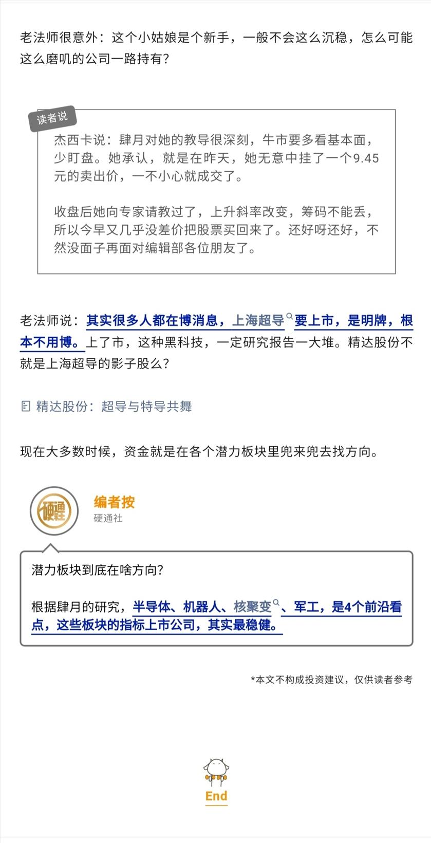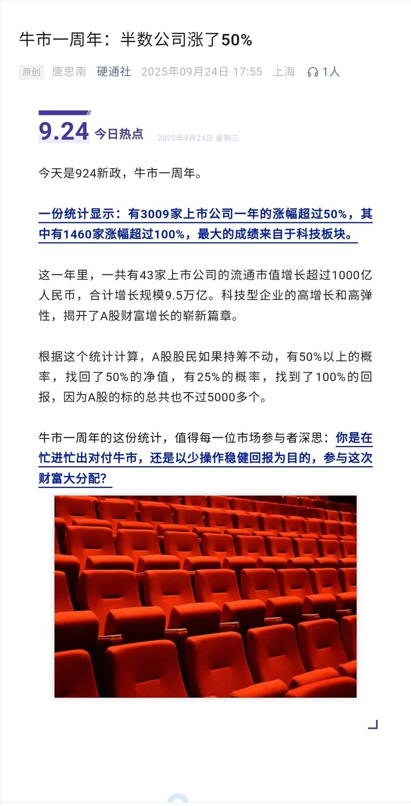 牛市一周年在买买卖卖中间 实际上错过了不少,持筹不动虽然有点马后炮,但是也是有道理的。主要关键还是看当下 的心态能坚持多久,对未知的未来到底有多大勇气,不测和反弹哪个先来?