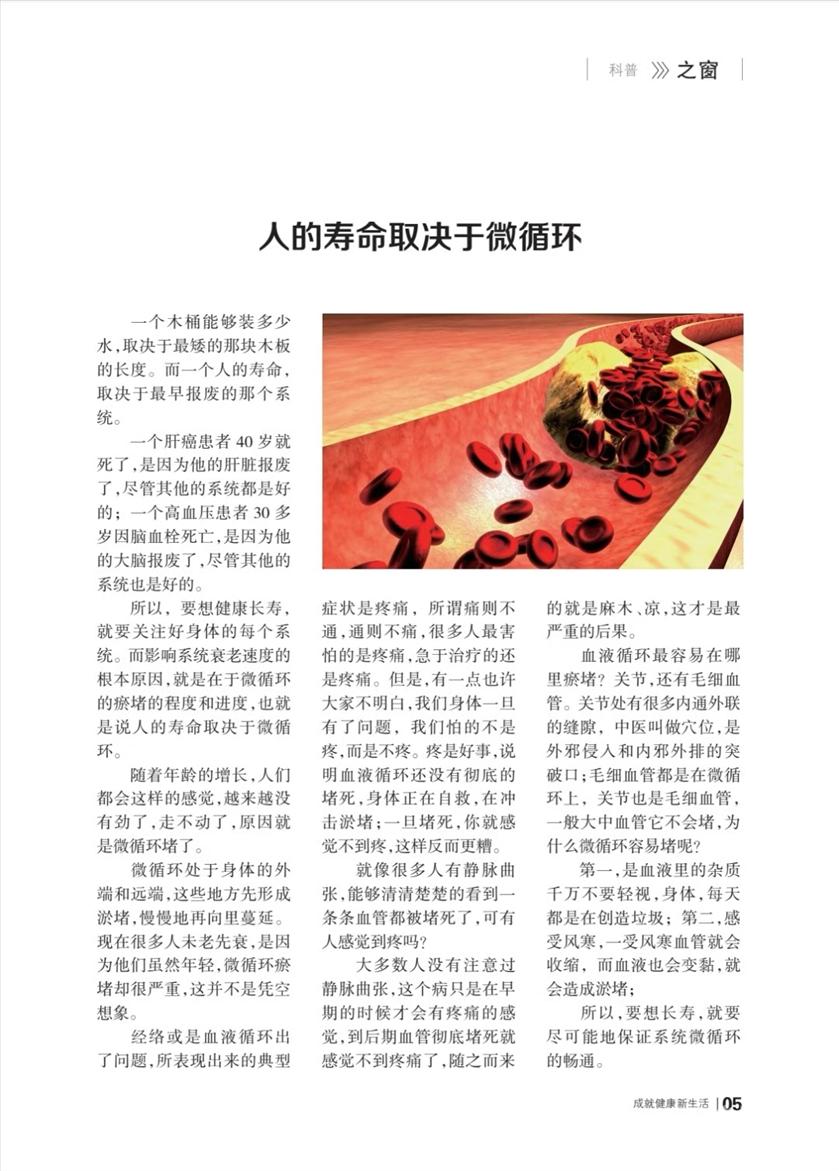 血管遍布于全身,大大小小连起来约有10万公里,保证了人体各个部位的血液、氧气及营养物质供应,是人体内最重要的“交通网络”。人与动脉同寿,血管是影响人体健康和寿命的重要因素。