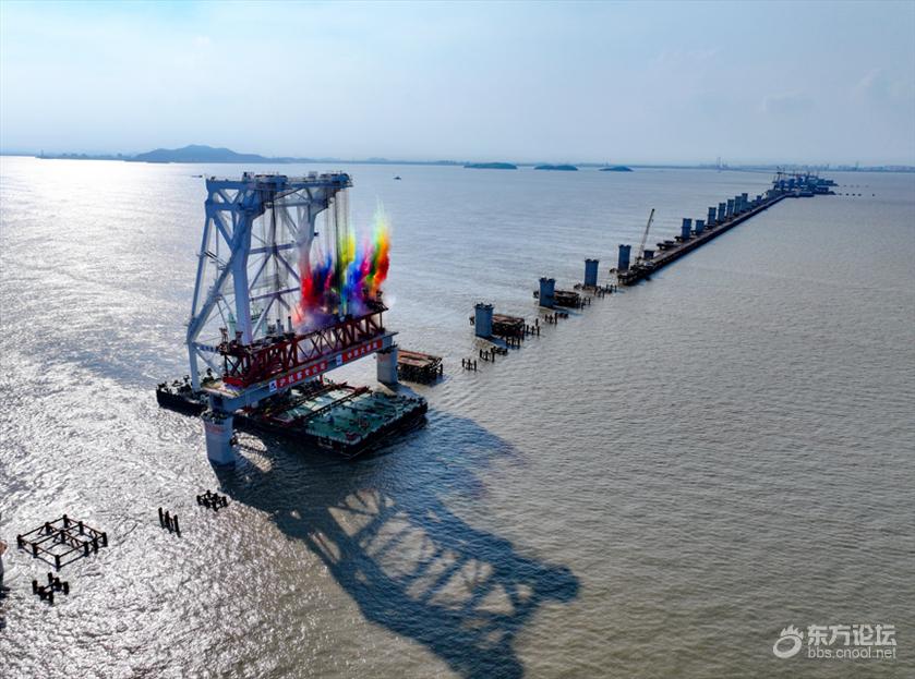 杭州湾跨海铁路桥海上首梁架设成功。吾凯杰 万里鹏/摄 通苏嘉甬高铁 杭州湾跨海铁路大桥建设 迎来重大节点 今天下午 随着“天一号”运架一体船 将重达2800吨的“世界梁王” 架设到107号和108号桥墩之间 全桥首孔80米预制混凝土箱梁 同时也是全桥首孔海上箱梁 正式完成架设 ↓↓↓ 这一里程碑式突破,宣告杭州湾跨海铁路大桥全面进入上部结构施工新阶段。 杭州湾跨海铁路大桥海中引桥采用230孔80米/60米预制箱梁,最长联达3080米,其“超长联、大跨度”创下了高速铁路混凝土连续梁的世界纪录。 此次架设的“世界梁王”长78.2米、宽13.5米、高5.4米,面积1055.7平方米,重2800吨,相当于2000多辆小轿车的重量。 要在这片海域架设重达2800吨的80米级箱梁,殊非易事。 作为世界三大强潮海湾之一的杭州湾,海宽、风大、流急、水浅,建桥条件极为复杂恶劣。 为确保架梁作业分毫不差,项目部使用满载排水量12200吨、最大起吊重量为3600吨的“天一号”运架一体船进行此次作业,并结合杭州湾架梁难点,量身打造“取-运-架”全链条一体化解决方案。 同时,为解决杭州湾海域海床淤泥层厚且回淤快、打通出海码头运梁通道难题,项目投入清淤船、运泥船,24小时作业,提前为梁体出海铺就坦途。 为了按期优质完成梁体的取、运、架等施工任务,中铁大桥局依托精准潮汐测算,安排“天一号”在低平潮取梁、涨潮期运输、平潮期落梁,落梁误差控制在毫米级,完成与潮汐赛跑的“精准手术”。 同时在“天一号”臂架、吊具上布设85组智能传感器,在海上指挥调度中心的监控大屏上,实时对船舶状态、结构受力和变形、吊装动作等10多类大数据进行秒级反馈和智能监控,实现架梁全过程风险管控。 “目前,大桥建设正按计划稳步推进,预计2026年底将完成海中引桥主体工程,2027年底建成通车。”中铁大桥局项目经理蒋本俊说。 通苏嘉甬高铁是我国“八纵八横”高铁网沿海通道的重要组成部分,自盐城至南通高铁南通西站起,向南经江苏省苏州市,浙江省嘉兴市、宁波市,引入宁波枢纽宁波站。项目建成后,将推动长三角地区路网结构更加完善,极大便利沿线人民群众出行,对推进长三角高质量一体化发展具有十分重要的意义。 |