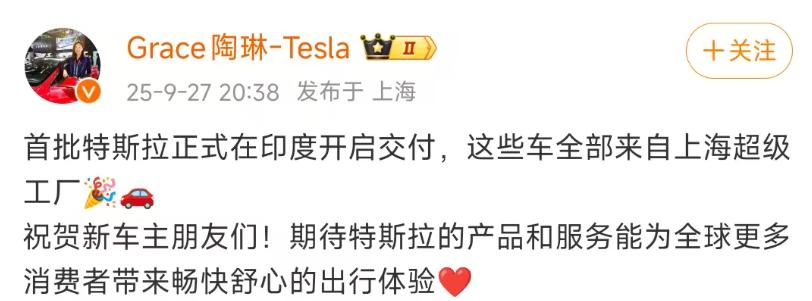 9月27日,特斯拉公司副总裁陶琳宣布,印度首批特斯拉Model Y 正式交付,这批车型全部产自特斯拉上海超级工厂。 ![]() ![]() ![]() 7月份,特斯拉在印度的首家展厅正式开业,这标志着特斯拉正式进入印度市场。展厅位于孟买的班德拉库尔拉综合体,面积达4000平方英尺,主要展示中国生产的Model Y车型。 Model Y在印度的起售价为598.9万卢比(约合49.9万元人民币),长续航后轮驱动版售价为678.9万卢比(约合56.6万元人民币)。 据财联社9月2日报道,知情人士透露,自7月中旬开始销售以来,这家电动汽车制造商仅收到了超过600份汽车订单,这一数字远未达到公司的预期。这大约相当于特斯拉今年上半年全球每四小时交付的车辆数。 首批交付的车辆将仅限于孟买、德里、浦那和古尔冈这四个城市。此次交付规模取决于已收到的汽车全额款项以及特斯拉在目前拥有实体业务的四个城市之外的交付能力。 特斯拉公司原本指望凭借自身品牌影响力,以及首席执行官马斯克与特朗普总统昔日的亲密关系,进军印度尚处于起步阶段的电动汽车领域。 但事与愿违,马斯克与美国总统的公开冲突、美印双边关系的恶化、高额的当地进口税、以及价格敏感型市场的残酷现实,都打破了这一梦想。 特斯拉不仅在印度市场遭遇冷淡反响,其在中国和美国这两个其最大的市场中也面临着不断增加的挑战。今年1至7月,特斯拉在华销量约43.2万辆,较2024年同期的50万辆下滑13.6%。 此外,特斯拉在欧洲部分的市场销量也遭遇了连续第八个月下滑,8月法国、丹麦和瑞典新车注册量分别下降47.3%、42%和84%。 欧洲汽车制造商协会(ACEA)周四发布的数据显示,8月份特斯拉电动汽车在欧洲的注册量(衡量销量的指标)同比下降约23%,为连续第八个月下滑。 |