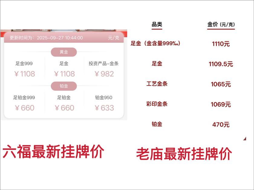 随着国庆假期的临近,黄金市场再度成为消费者关注的焦点。 9月以来,国际金价持续走高,截至目前已累计上涨约9%,年内涨幅超过40%。随着国际金价走高,国内品牌足金首饰价格已突破1100元/克。国内多家主流珠宝品牌的“一口价”黄金饰品陆续启动涨价,部分一口价产品破2000元/克。 根据9月27日的最新报价,国内传统黄金饰品品牌价格全线站上了1100元/克。当天,周大福、周生生、六福三个品牌足金报价均是1108元/克,老庙黄金1100元/克。 ![]() 周大福、潮宏基、周生生等品牌确认涨价 针对市场传闻的周大福“一口价”黄金饰品即将涨价的消息,9月19日,周大福相关负责人回应称,现阶段确认“一口价”黄金产品将于十月开始陆续加价,调价幅度后续将公布。 9月24日至25日,据新京报贝壳财经,北京周大福、潮宏基、周生生等多家品牌黄金珠宝专柜已开始或即将上调产品价格。 周大福柜台工作人员介绍,不同品类涨幅不一,部分畅销款涨幅可能达30%–40%,已有顾客“赶在涨价前预订购买”。 这是周大福年内第二次上调“一口价”产品价格。今年3月,该品牌已完成一轮10%–20%的调价。 老铺、琳朝、君佩、宝兰已全线涨价 半个月后琳朝也全线上调价格。其中,单克涨幅最大的是笑系列生肖吊坠,从调价前的1290元/克涨到了1815元/克,一克上涨525元,同比上调40%。 你目前有计划购买金饰吗? |