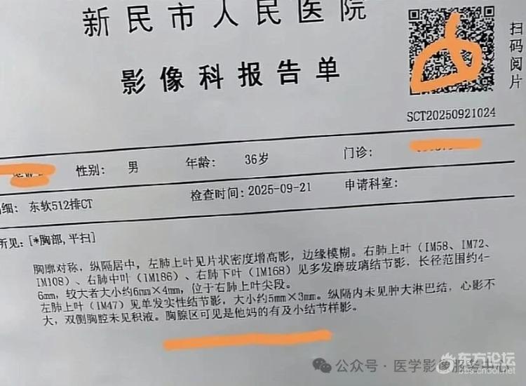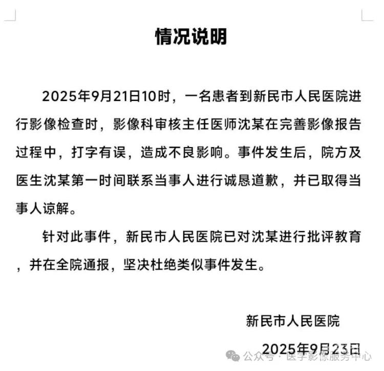 某医院的放射科医生打字不够仔细。该医生本来想输入:胸腺区可见“实体密度影“及小结节样影,但输入的是拼音首字母缩写“stmdy”,输入法智能联想导致出现了该问题。