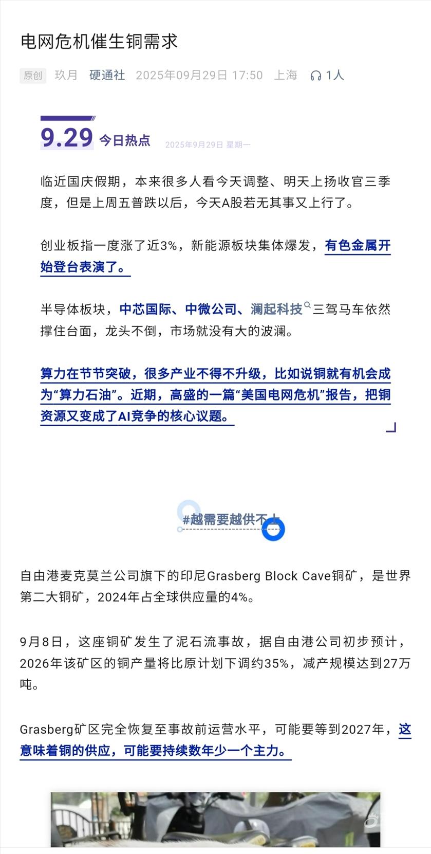 截至8月末,央行黄金储备为7402 万盎司,就是2302.28吨,这是央行连续第10个月增持黄金。央行对有色金属的态度很明确,铜还是大宗金属,还有很多小宗的,稀有的金属,这些都是战略物资。只是不像有资本在的风口那么过瘾,但是却细水长流。