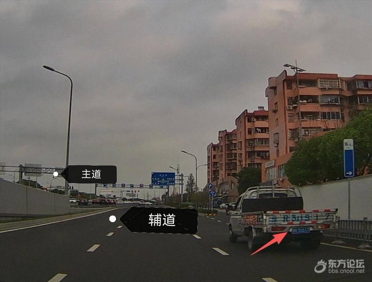 你首先要知道自己在主道还是辅道行驶。楼主的车明显在辅道上行驶。