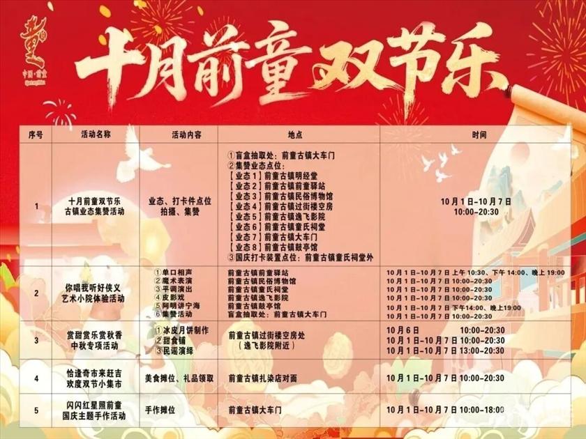 ![]() 倒计时1天! 国庆中秋假期就在眼前, 你的心是不是早已飞出工位, 开始规划去哪儿嗨了? 别急,这份「假期游玩指南」, 拯救你的选择困难症, 让你8天精彩不重样! 2025年中秋节与国庆节假期相连,共放假8天,2025年10月1日(周三)至8日(周三)放假调休,共8天。 9月28日(周日)、10月11日(周六)上班。 特色集市 ![]() 活动时间:10月1日—10月8日 活动地点:城隍庙、开明坊 活动内容:宁波人的“回忆杀”油炸鹌鹑,糯叽叽的宁波汤圆和梁弄大糕,还有牛肉面、锅贴、梅花糕、泡虾、飞饼、木莲冻……再挑剔的人也能找到合适的摊位大快朵颐。20+宁波老底子美食、非遗手作、文创潮玩一站式打卡,更有宁波走书、甬剧童唱、提线木偶戏、《罗城千年》沉浸式演艺以及亲子互动体验。 ![]() 活动时间:10月1日—10月8日 活动地点:宁波南塘老街 活动内容:“奢野潮集·秋日好市”汇聚美食、文创等多元好物,古戏台上演越剧、古筝、流行音乐等演出,C区广场连播红色经典露天电影。美陈装置与古色古香的建筑交相辉映,随手一拍就是大片。 ![]() 活动时间:9月30日—10月8日 活动地点:老外滩延伸段 活动内容:江风混着交响乐声,激光秀在建筑上流转,这是烟火与创意共舞的潮流市集。摊位里,文创好物汇聚,让你淘尽宝贝;艺术家、手工艺人齐聚,展现奇思妙想;宁波老底子小吃+全国经典风味,150+档口嗨吃不停,从舌尖到指尖,一站式满足你对假期的所有想象。 ![]() 活动时间:10月1日—10月8日 活动地点:慈城古县城 活动内容:慈城古县城千年大集来了!近200个摊位藏着烟火气,白天逛非遗,晚上追灯影,还可以参与和NPC的互动获取“银票”,解锁茶馆拍卖好物等玩法。现场还有打铁花、无人机秀、国风巡游等精彩表演,更有实景剧本杀《我在慈城当判官》,让你沉浸式感受国风韵味。 ![]() 活动时间:10月1日—10月8日 活动地点:云创1986青年国度(江北区风华路928弄) 活动内容:市集以中国传统文化为主题,设置“汉服游园”“非遗手作”“纸墨书香”“古风歌舞”“元气青年”“诗酒花茶”等板块,引入40多位创客青年现场摆摊,邀请非遗手作匠人、本土原创音乐人现场助力,还有露天电影、露天音乐会等影音盛宴,为你提供“看”“做”“赏”“玩”“食”等体验。 ![]() 活动时间:10月1日—10月8日 活动地点:宁波植物园内 活动内容:国庆假期正遇“悦享丰收”果蔬芳香展,植物园的市集围绕“赏、趣、玩、购”四大维度展开,现场还有中秋雅韵、音声疗愈时刻、全民K歌王、自然香牌DIY等超多活动! ![]() 活动时间:10月1日—10月8日 活动地点:北仑银泰城1号门 活动内容:这里是活力满满的夜间生活圈:网红小吃、手冲咖啡、花式甜点等美食挑动你的味蕾;非遗陶艺、小众饰品、花鸟小铺等摊位带来满满的创意;个性潮服、艺术装置和手办潮玩等,满足你的小众审美。现场不定期举办的主题活动,搭配歌手驻唱、创意快闪,会让你流连忘返。 ![]() 活动时间:10月1日—10月8日 活动地点:宁波文化广场 活动内容:这里堪称“像素艺术的沉浸式乐园”,涵盖像素玩具、原创IP插画、文创产品、手作编织等多个创意品类——神奇的“像素石”,让你仿佛闯入复古游戏世界;机械潮玩,金属零件被组装成趣味玩具,令人忍不住想亲手尝试;原创插画与文创,每一件都承载着不同城市的故事。现场还设置了拼豆等手作体验,邀请大家一起进入像素世界! ![]() 活动时间:10月1日—10月8日 活动地点:奉化溪口三里长街 活动内容:这个假期,棒集超吸睛!这里全天都能沉浸式玩复古——看城楼舞曲、竹筏演艺、旗袍舞巡游,还能赏艺术表演、玩趣味手作、尝各类美食。微笑大屏帮你定格欢乐瞬间,转角还有可能偶遇惊喜快闪,邂逅小确幸。 ![]() 活动时间:10月4日 活动地点:余姚市公共文化中心 活动内容:浙“BA”赛事的热血与烟火气完美交融!在余姚公共文化中心场外观赛点,主题市集同步热闹开启,非遗美食、特色小吃、创意饮品、文创手作、农副产品等,让人目不暇接。你在观看赛事直播、为球队呐喊助威的同时,还能逛市集、品美食、购好物,体验感满满! ![]() 活动时间:9月30日—10月2日 活动地点:慈溪明月湖北岸休闲广场 活动内容:“明月湖・紫气嘉年华”盛大开启!从传统节庆体验到水上运动挑战,从周末湖畔演绎到文创艺术展,从轻餐美食盛宴到非遗集市逛购,多元活动承包你的假期快乐。 9月30日晚,乌兰图雅空降现场,零元听电音,还有从中央公园大广场出发到明月湖的国家级非物质文化遗产“英歌舞”巡游,让这个夜晚格外难忘! ![]() 活动时间:10月6日—10月7日 活动地点:天明湖公园(宁海城市广场) 活动内容:这是一场音乐与市集的双重狂欢!美食区里,宁海特色美食一网打尽,麦饼、汤包满是家乡味,网红小吃与醇香咖啡、清爽饮品满足不同口味需求;文创区涵盖饰品手作、创意工坊等多元体验,亲手打造专属小物件成就感满满。现场设置多个互动打卡点,红妆主题布景搭配趣味道具,逛市集、听音乐,承包你的快乐时光! ![]() 活动时间:10月1日—10月8日 活动地点:宁波松兰山滨海旅游度假区 活动内容:这个市集用“红”组局,打造全时段山海狂欢!Livehouse等演出轮番上阵,潮玩快闪惊喜不断,赶海排雷赛充满童趣,“红人自拍馆”设置多样主题布景。市集不仅有海鲜美食及特色小吃,还贴心设有红人躺平休息区,逛累了就能放松身心。 ![](