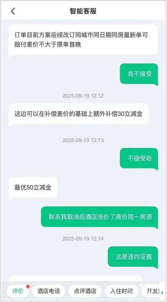 “十一”黄金周将至,关于酒店预订的纠纷却让部分消费者“闹心”。 昨天(9月29日),话题“国庆订单被强制取消后房费涨3倍”登上微博热搜,引发广泛讨论。 ![]() 9月16日,湖南长沙的黄女士通过平台,成功预订了郴州市北湖区裕后街欢漫酒店一间豪华大床房,入住日期为10月3日,价格为每晚160元。然而在9月19日,平台通知她,因“酒店调错价格”需取消该订单。黄女士对此表示拒绝,理由是“车票早已买好,当地酒店普遍涨价”。但次日,黄女士发现该订单已被单方面取消。 ![]() 黄女士多次拒绝,但订单仍被取消(受访者提供 来源:央广网) 9月26日晚,记者根据黄女士提供的信息,通过平台查看,她预订的酒店仍有豪华大床房房型,不过价格已变为600多元。 ![]() 黄女士所订房型已涨至600多元(图源:央广网) 当天晚上,记者以消费者身份致电平台客服。客服人员表示,如因酒店方无法安排入住,平台会主动联系消费者协商处理;若消费者拒绝协商,应“原单保留”。 次日,记者致电涉事欢漫酒店,询问该笔订单为何取消。酒店工作人员表示,当时售出的价格是没有调整的价格,共涉及四十多个房间。该工作人员称,多起低价房间出售,线上平台应负责任。 黄女士表示,记者提出采访诉求后不久,同程客服重新联系她,提出新的补偿方案,称可以接受超过160元的差价。 无独有偶,江苏苏州的李女士通过某平台支付费用后,订单同样被取消。 今年9月14日,她通过某平台付款约516元,预订了10月1日至4日的旅馆房间。然而还没到十分钟,该笔订单却被取消。李女士查询发现,该旅馆仍有该房型,重新预订时,三天的房费已经从下单时的500多元变成927元。对此,客服给出“酒店房源不足情况下,会出现订房失败”的理由,并称可以给李女士补偿50元。李女士认为,高德方面给出的理由过于牵强,给出的补偿方案也无法弥补差价。