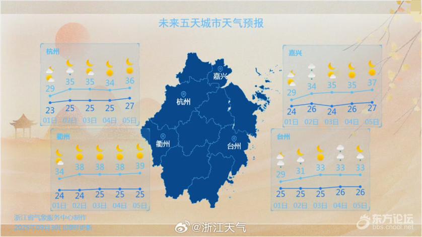 盼望已久的国庆假期,终于来了! ![]() 杭州街头国庆氛围浓。里尔 摄 经过昨天(9月30日)一天的能量释放,今天浙江的降水范围大大缩小,极大方便了大家走亲访友和旅游。 不过,浙中南的朋友下午还需要重点关注强对流天气。 而实际上,一直到假期结束,浙江基本以多云天气为主,午后局地有雷阵雨分散性出没,雨势不大,降水范围也不大。 天气总体利于出行,但是气温方面就显得有点不合时宜了。 ![]() 10月2日开始,大范围的高温天气又要卷土重来,浙江气温较常年偏高,最高气温大部34—37℃,局地38℃以上。 一直到假期尾声的7—8日,才会有冷空气扩散南下,浇灭高温天气。 比如杭州,从2日开始一直到6日,都是35℃上下的高温天气。 提到国庆热,我们第一时间想到的就是2022年,当年杭州出现了国庆假期的历史最高气温38.4℃(2022年10月3日),也创造了杭州最晚的高温日纪录。 杭州气象台说了,今年国庆假期的副热带高压强度前无古人,杭州可能迎来历史最热的国庆,虽然热得没有2022年极端,但是却热得持久。 杭州之外,衢州、丽水一带预报可能出现39℃的高温。 所以,国庆期间有赴浙江计划的朋友们,要注意带好防晒装备,做好防晒工作。 ![]() 图源:中央气象台 全国来看,假期期间,北方冷空气活动频繁,降温明显,而江南、华南等地仍是秋老虎“主场”,天气持续闷热。 同时,华西、黄淮等地降水频繁,华南南部假期后期或有台风雨来扰,公众假期出行需携带雨具。 浙江天气预报 今天:全省多云,其中浙中南地区午后部分有阵雨或雷雨。 今天早晨最低温度:全省:23—25℃。 今天白天最高温度:浙中南地区:32—34℃;浙北北部地区:28—30℃;其它地区:30—32℃。 10月3日:浙北北部地区多云,午后部分有雷阵雨;其它地区晴到多云,午后有分散性雷阵雨。 10月4—5日:沿海地区多云,部分有阵雨;其它地区晴到多云。 10月6日:全省晴到多云。 10月7—8日:全省晴到多云,其中浙北地区午后有分散性雷阵雨。 10月9日:浙北地区多云,午后部分有阵雨或雷雨;其它地区晴到多云,午后有分散性雷阵雨。 来源:潮新闻 、浙江天气、杭州天气、中国气象台等 |