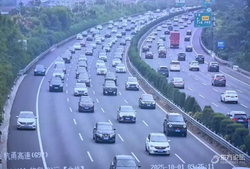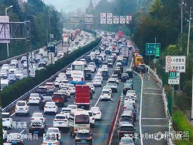 一早,宁波绕城高速云龙枢纽及宁波西枢纽就因大流量被率先预警。随后,甬莞高速及甬台温高速,也进入“大流量缓行群聊”。 至上午8点,除了它们被“点名”外,杭州湾跨海大桥也因大流量启动一级预案。 ▲9点左右,象山港大桥上的车流。 上午9点至10点,大流量趋势基本明朗,全线高峰逐步到来:预警路段瞬间增加,高速全线大流量开启。 此时,甬莞高速台州方向横溪至咸祥段,宁波方向象山北段大流量缓行;甬台温高速台州方向姜山—宁海北路段大流量缓行;甬金高速金华方向宁波西—溪口东路段大流量缓行;杭州湾跨海大桥上海方向大流量缓行;杭甬高速高桥枢纽双向大流量缓行…… ![]() ▲上午9点,杭甬高速上因事故和大流量,出现缓行。 “从目前的情况来看,假期首日的大流量比往年同期早出现一些,全线高峰略晚了一些,可能与天气因素有关。不过总体上还是比较平稳的,堵点还是那些,下午估计也不会有太大变化。”宁波交警相关负责人说,根据往年经验,首日上午交通流量最大,中午略有回落,下午再次高峰,持续至晚上。 另外,从明天(2日)开始,高速出行仍会是大流量,但“热度”会较今天有所降低。