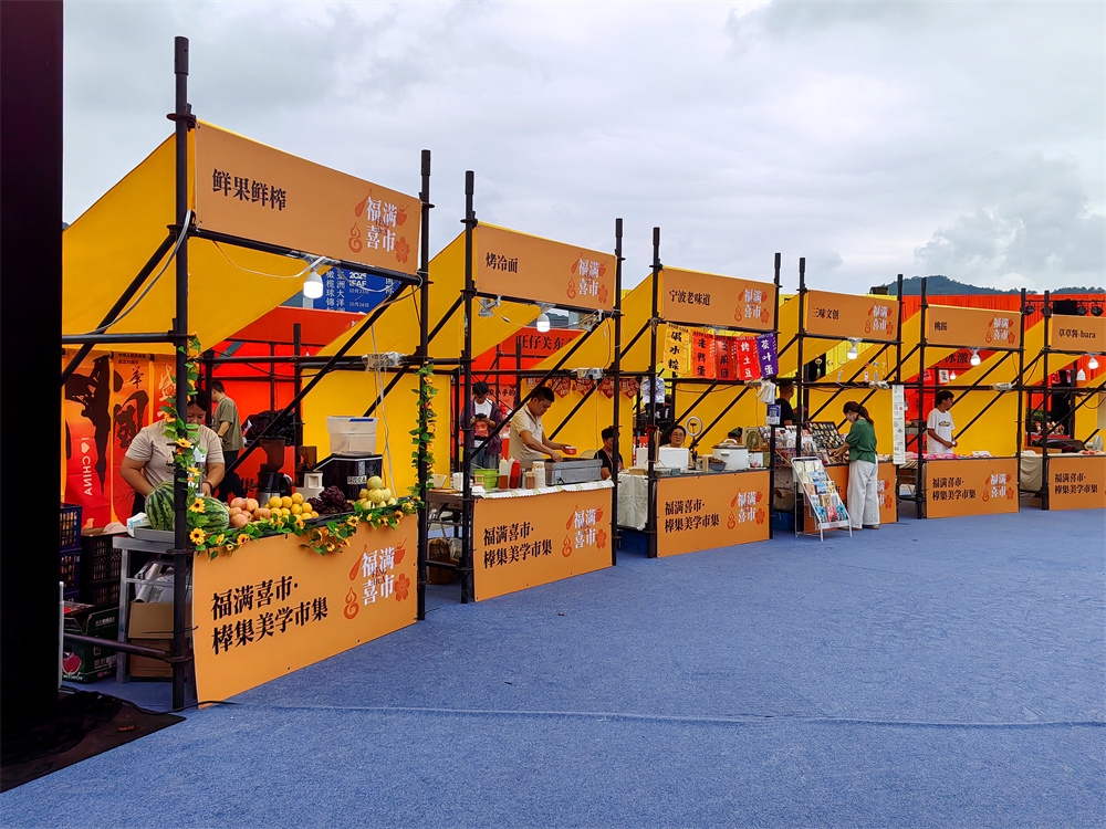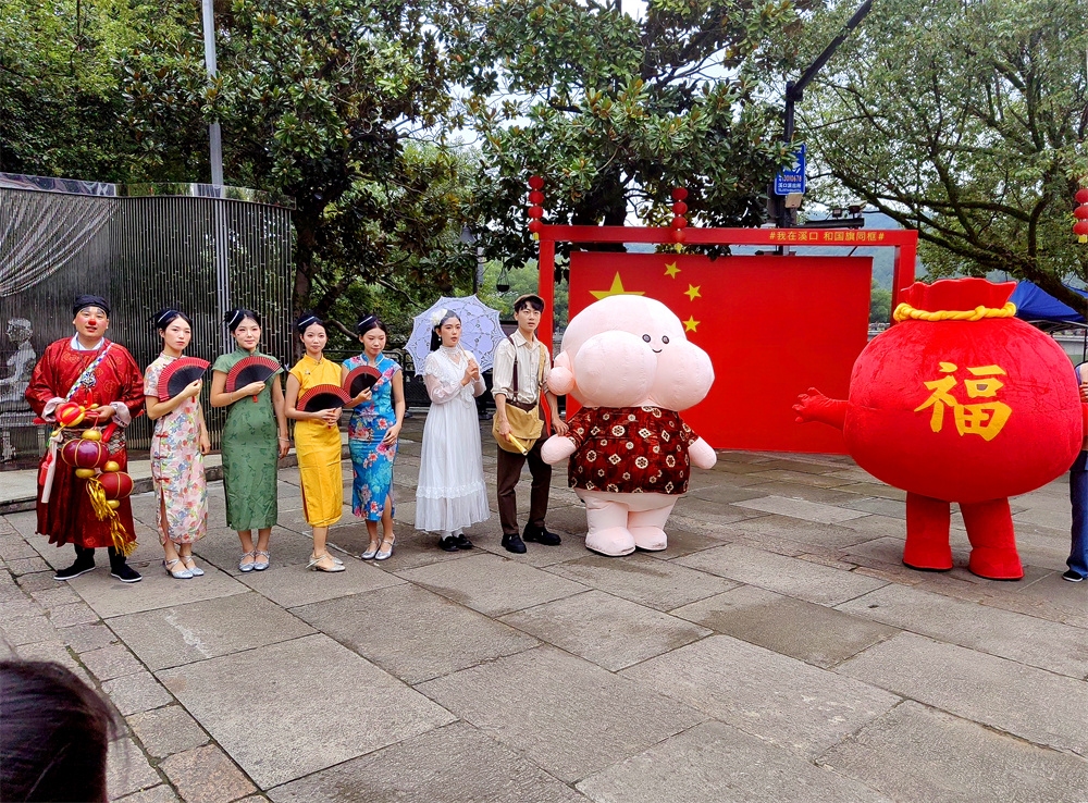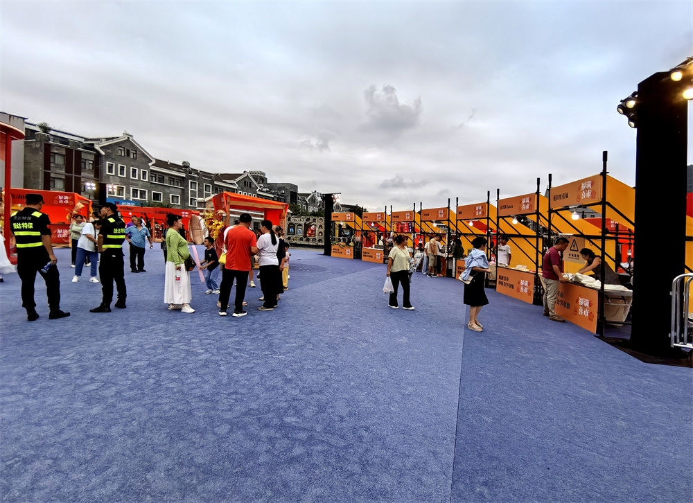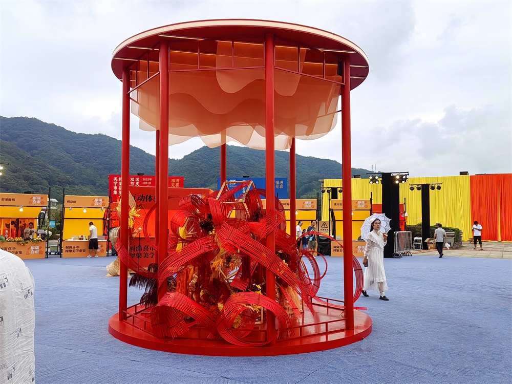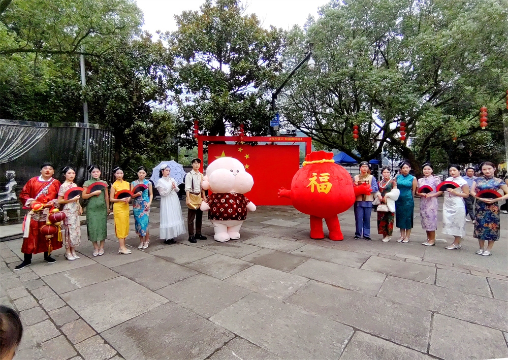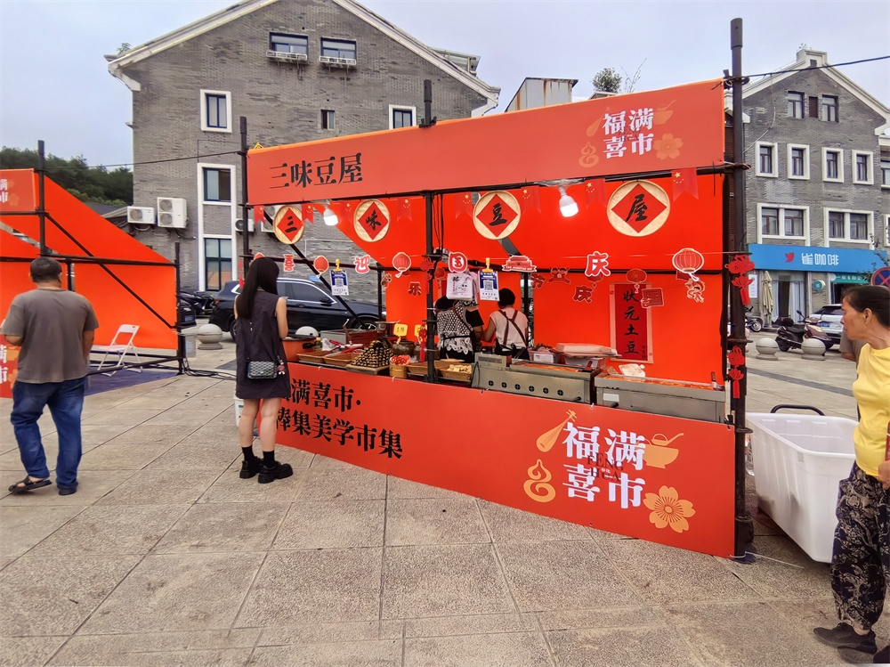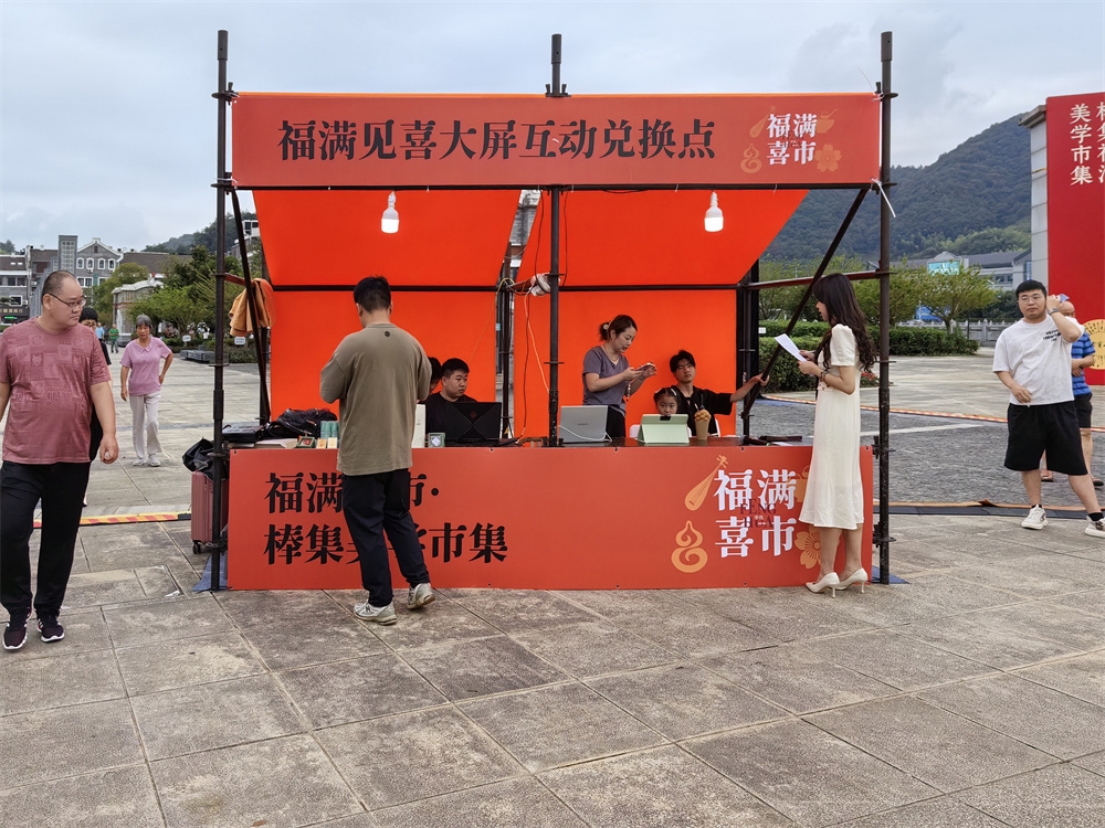 【一】新布置的武岭广场一派节日气氛,称为“福满喜市·棒集美学市集”