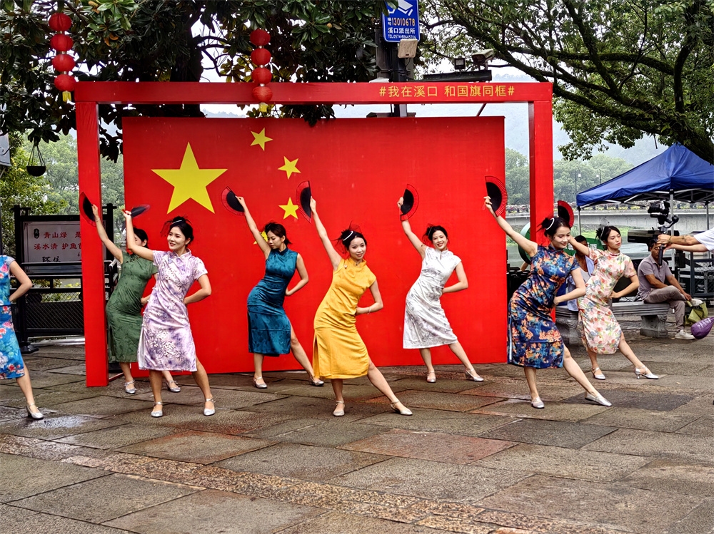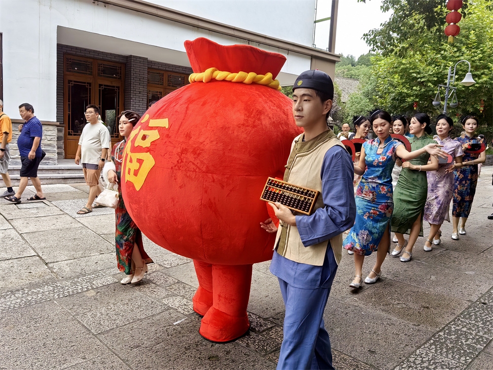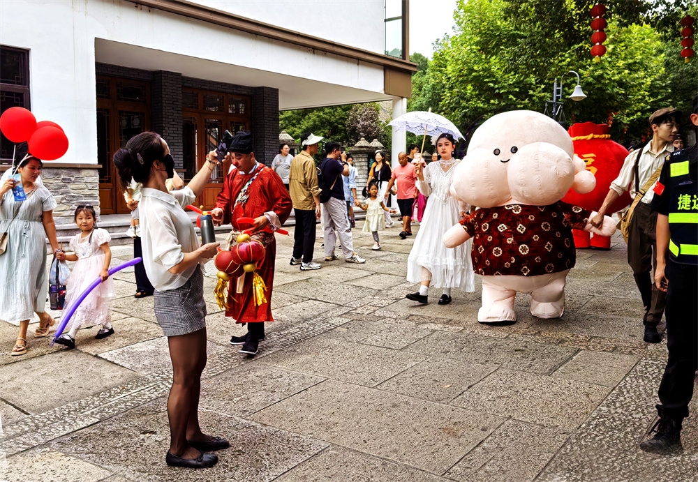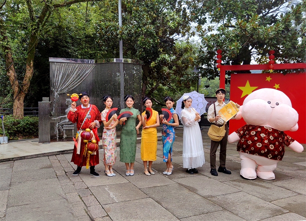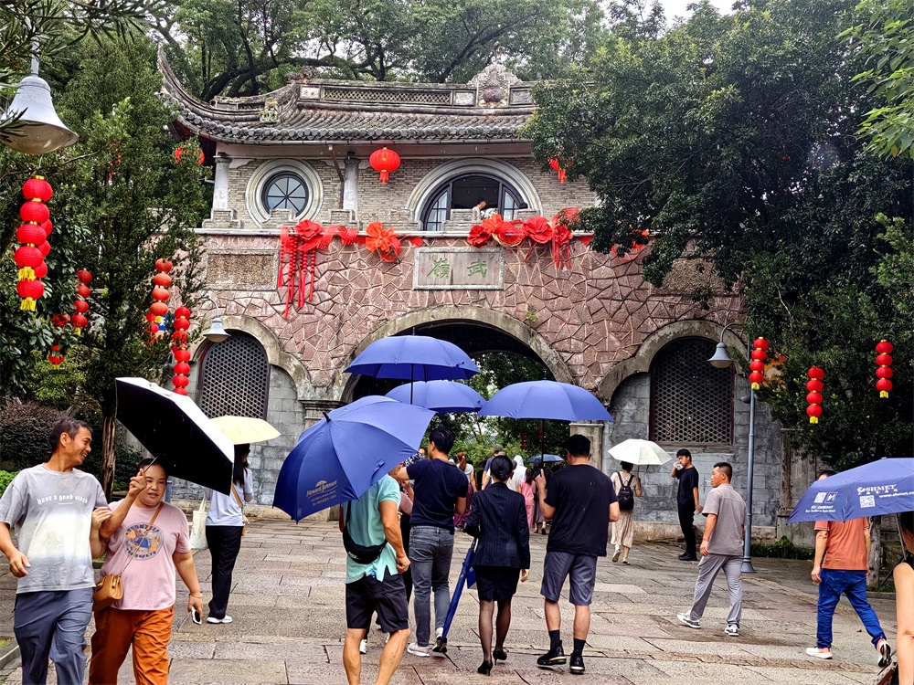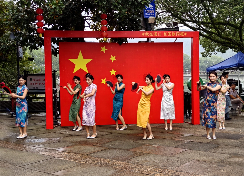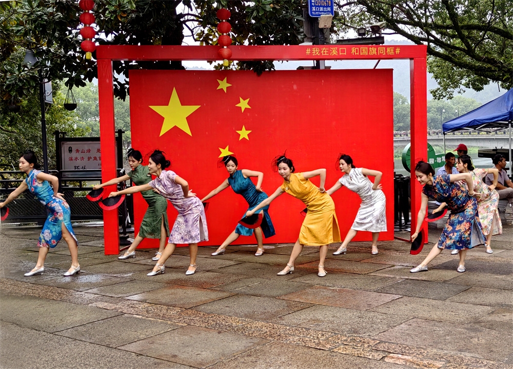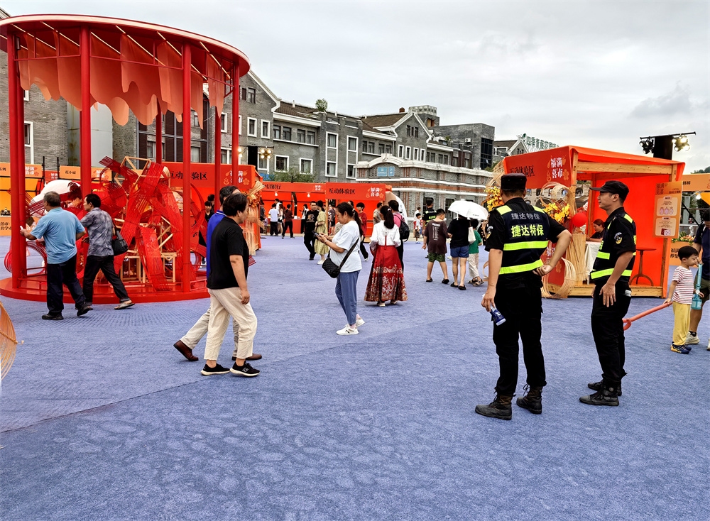 【一】新布置的武岭广场一派节日气氛,称为“福满喜市·棒集美学市集”