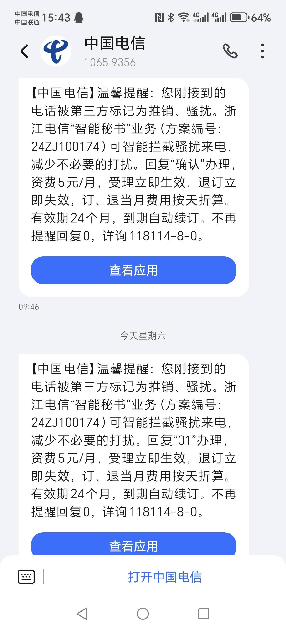 随着手机普及方便了百姓,同时也给百姓带来各种各样的风险和烦恼,名义上是实名制事实上各大运营商利此政策赚着黑心钱,从下图就可以看出各种垃圾电话垃圾信息是运营商营销的手段促使用户去开通各种各样权限来赚取黑心钱,难道拦截制止各种各样垃圾电话信息不是他们理应的责任吗?想不通……