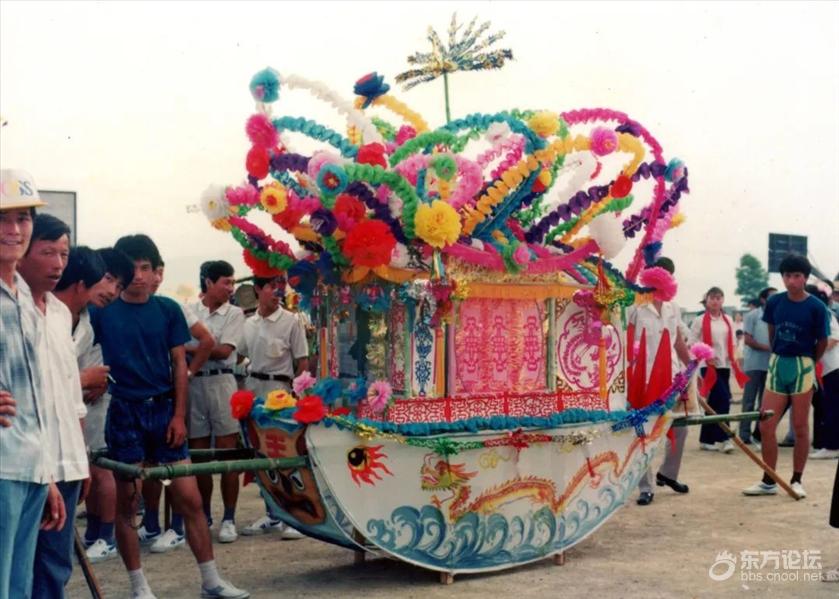 ![]() 咸二村第一代彩船(虎头官船)1991年制(咸祥镇文化站供图). 西宅村第二代彩船(龙形船)1997年制(咸祥镇文化站供图)