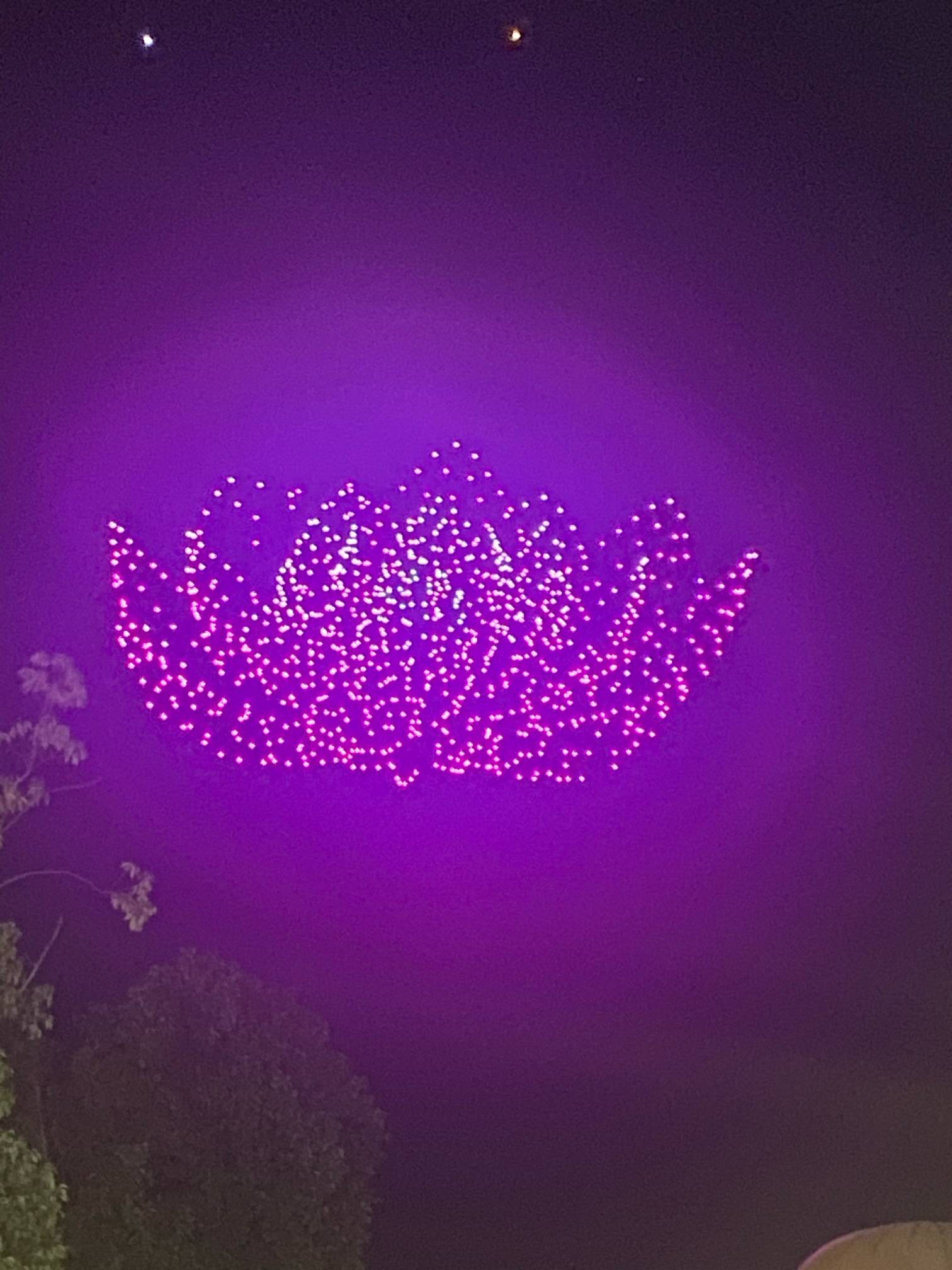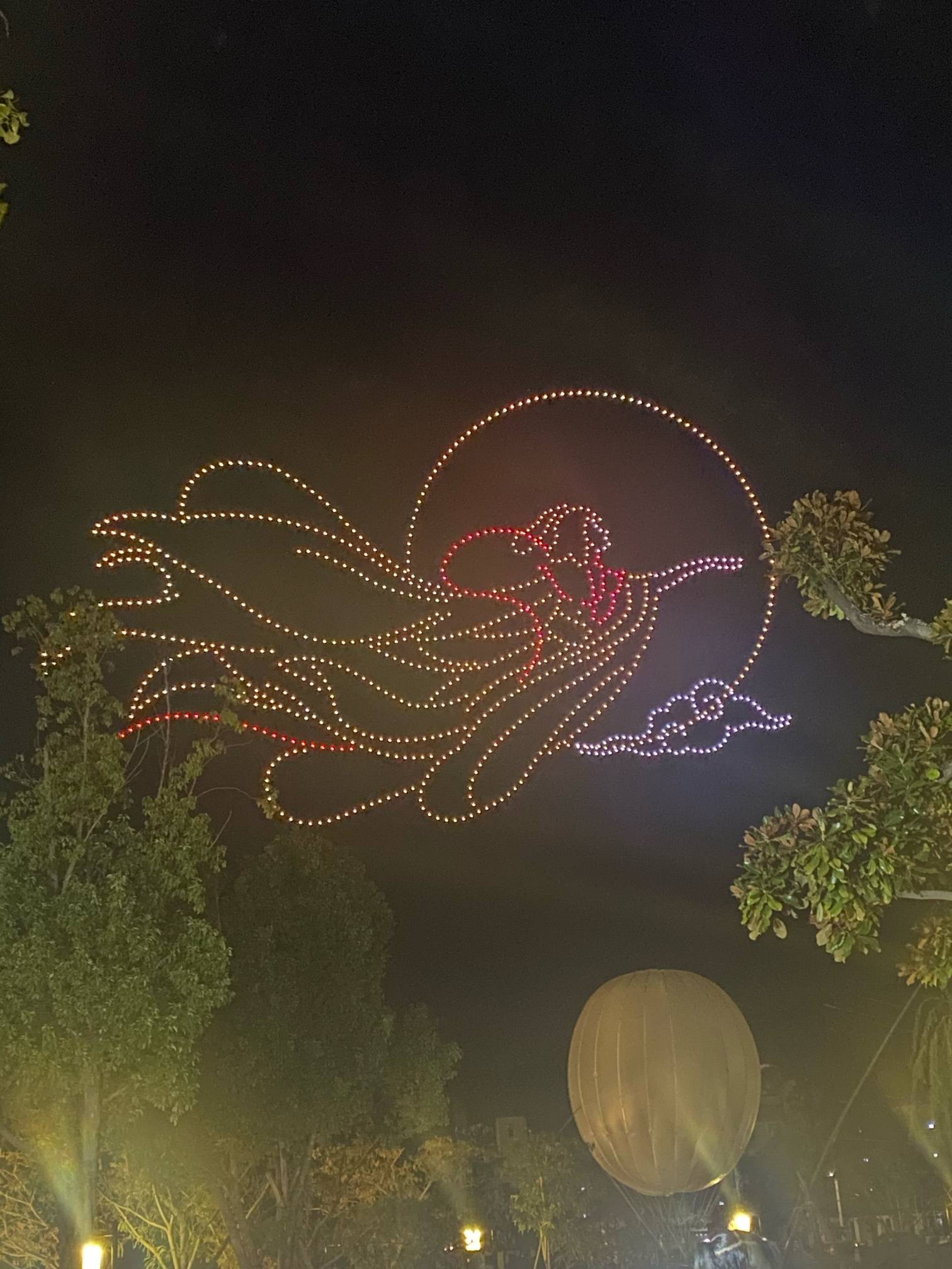 晚上过去还可以的,天气还凉快点,夜景看看,还有表演,无人机等,就是人很多,昨晚去看了无人机表演不错
