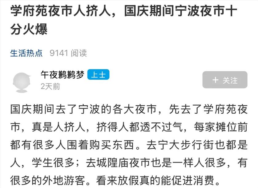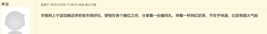 也有人觉得夜市都是差不多的,吃的喝的品类都没什么区别,大家就是喜欢凑热闹。 ![]() ![]() ![]() 假期里的夜市,功能早已超越了“吃”。它是一个巨大的社交场、情绪释放地。我们在其中穿梭、排队、分享,用一份份看似普通的小吃,串联起对假期和生活的热爱。味道或许会忘记,但那份人挤人的热闹,和好友一起抢到最后一串里脊肉的快乐,会留在记忆里。 这个假期,你在宁波哪个夜市“挤”过呢? 欢迎留言讨论 |