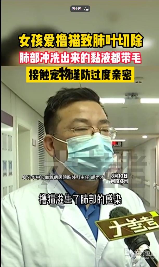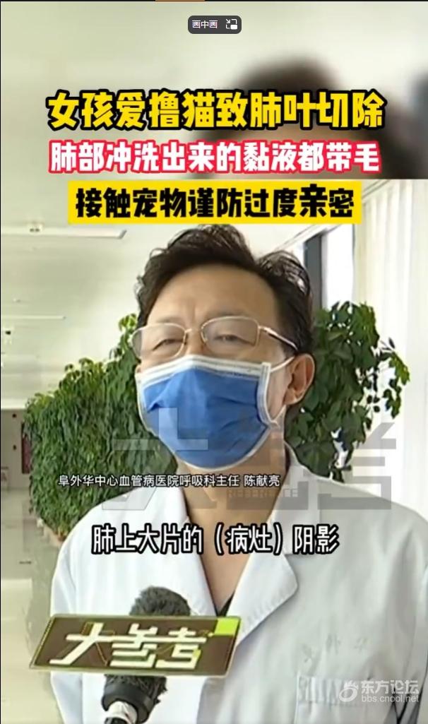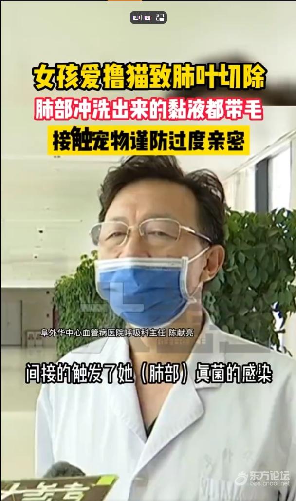 8-11 17:09 九个月前,24岁的小张因咳嗽、胸闷来到医院胸外科就诊。CT提示患者左上肺有肿块,行气管镜进一步明确检查。抽取脓液送检后,发现是“肺曲霉菌感染”。 经过胡为才副主任的详细询问和了解得知,原来,小张非常喜欢小猫,平常看到小区里的流浪猫,经常会去照顾它们。但流浪猫的卫生状况一般很差,小张自己日常并不注意防护卫生。在和流浪猫密切接触的过程中,会接触到很多相关疾病。 在她经常接触的小猫中,有一只她特别喜欢,喂了半个月之后把它抱回了自己家中。流浪猫身上的疾病,也就这样跟着她“走了”。 经询问得知,小张平时虽然没有和父母一起居住,但是她的生活和工作环境,卫生条件都没有问题。除了流浪猫接触史,并没有其他高危因素。所以,考虑小张的真菌感染,就是“流浪猫”带来的。 胡为才副主任介绍,对于猫的带菌率,目前还没有确切数据,但有抽样调查显示,家猫带菌率为10%左右,野猫是30%左右。 肺真菌病是由真菌引起的肺部疾病,主要指肺和支气管的真菌性炎症或相关病变。有专家研究显示:常见病原菌是曲霉菌属和隐球酵母菌属。疾病的发生主要取决于外界的致病因素和人体免疫力的相互作用。肺真菌病的临床表现多种多样,基本上表现为咳嗽、发热、咯血、胸痛、呼吸困难等,其他症状不明显。而咳嗽、呼吸困难也是肺结核、肺癌、支气管护张症的常见症状,因此缺乏特异性。 (阜外华中心血管病医院)