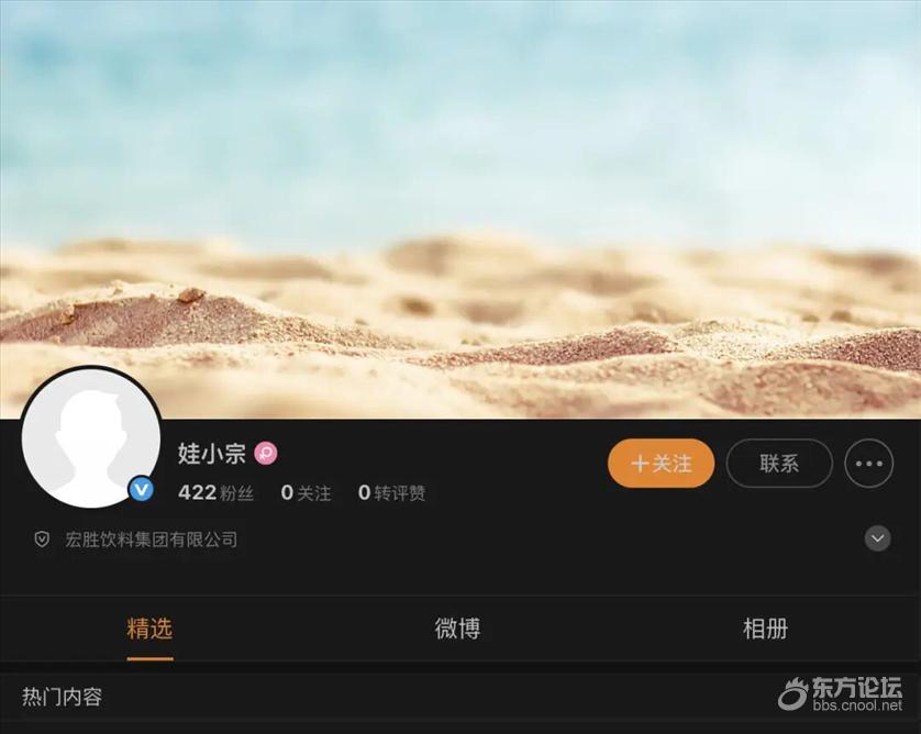 据界面新闻报道,10月11日,一个名为“娃小宗”的微博账号已完成平台认证,检索信息显示,该账号认证主体为宏胜饮料集团有限公司,审核通过时间为9月30日,目前粉丝数422,但暂未发布任何内容。 宏胜集团是恒枫贸易有限公司的全资子公司,祝丽丹为法定代表人和总经理,宗馥莉担任董事。