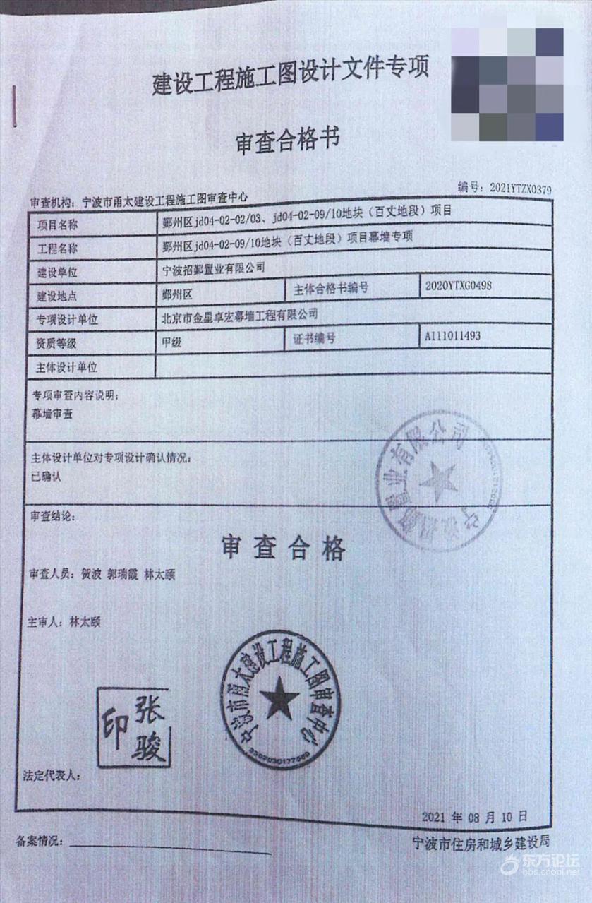 二住建部门出具的审查合格书 鄞州区住房和城乡建设局9月5日向部分业主出具的带公章的回复文件中提到,2021年8月10日,该项目审图机构根据《金属面板保温装饰板外墙外保温系统应用技术规程》DB33/T1230-2020等相关要求,通过了该项目幕墙和外墙一体板的专项审图,并出具了审查合格书。 ![]() 三里江印府的幕墙审查合格书。招鄞置业供图,下同 三第三方单位书面说明 该项目的审图机构、建筑设计单位及一体化板深化设计单位已出具书面说明,确认该项目外墙一体板做法符合国家、地方相关规范和文件。 ![]() 三里江印府项目的审图机构、建筑设计单位及一体化板深化设计单位出具的书面说明 四商品房买卖合同 该项目商品房买卖合同的附件六“关于装饰装修及相关设备标准的约定”中,有明确条款告知购房者该项目外墙使用“保温一体板、局部涂料加铝板”。