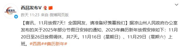 11月20日至26日放假调休共7天