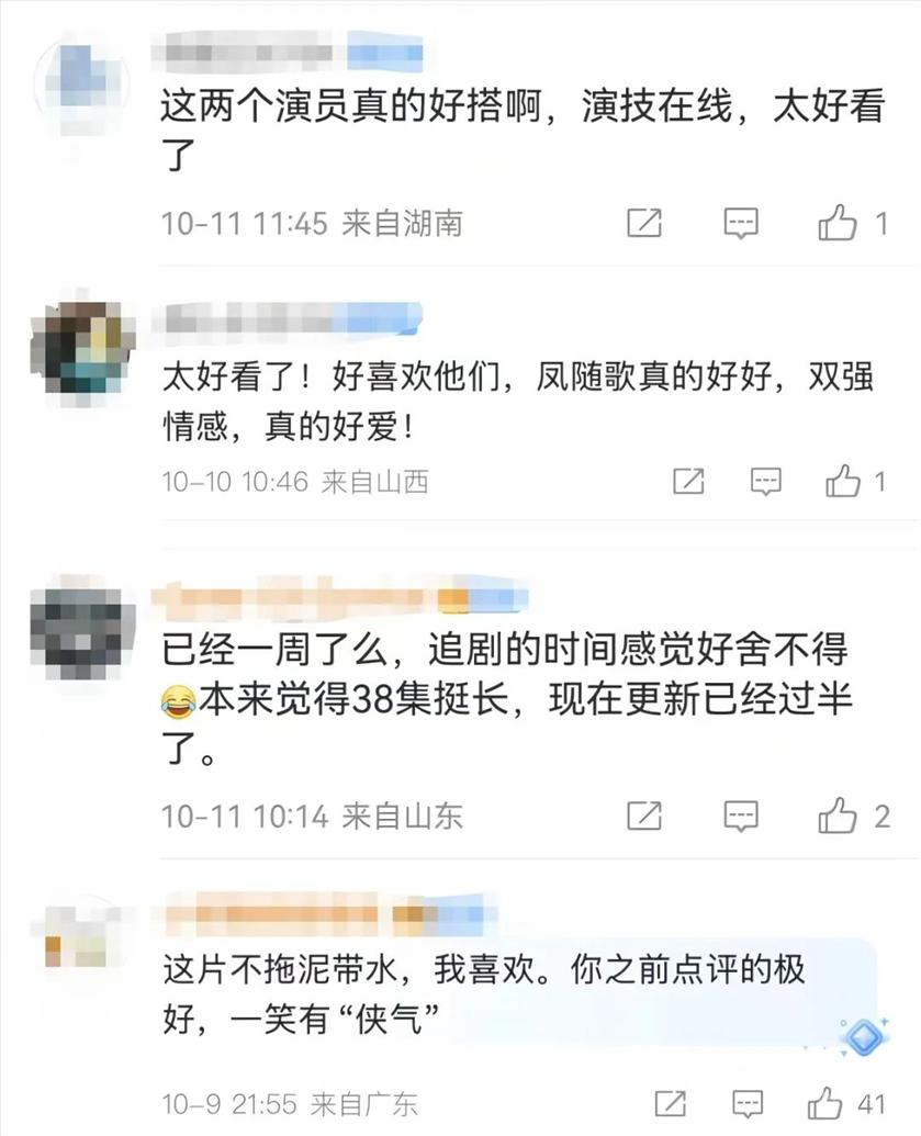 电视剧改编自炽翼千羽的小说《一笑》,以双强设定展开叙事,讲述锦绣国女射手付一笑(李沁 饰)与夙砂国大皇子凤随歌(陈哲远 饰)从战场宿敌到携手揭露两国阴谋的故事。 10月2日首播后,网友纷纷“下场”,为这部制作水平不俗、男女主角演技在线的古装剧在线宣传,可以说是“口碑纯正”。 网友们纷纷点赞 ↓↓ “特别干脆清爽的剧情,故事讲得不错”“这片子不拖泥带水,有‘侠气’”“真的太好看了,给《一笑随歌》点赞”…… ![]() 为了打造高水平的剧集,《一笑随歌》的制作团队在导演、编剧、造型美术、剧情和演员表演等多个环节都倾注了匠心。 总导演朱锐斌拥有《宁安如梦》《香蜜沉沉烬如霜》《星落凝成糖》等爆款作品,擅长用细腻镜头勾勒情感张力。他与蓝志伟、古志威两位导演默契搭档,从视觉到叙事形成创作合力。 在拍摄过程中,演员都全身心地投入到角色中。据了解,为了更好地诠释角色,该剧拍摄过程中,多位主演向专业的武术指导学习了各种剑法和招式,力求展现得淋漓尽致。 ![]()