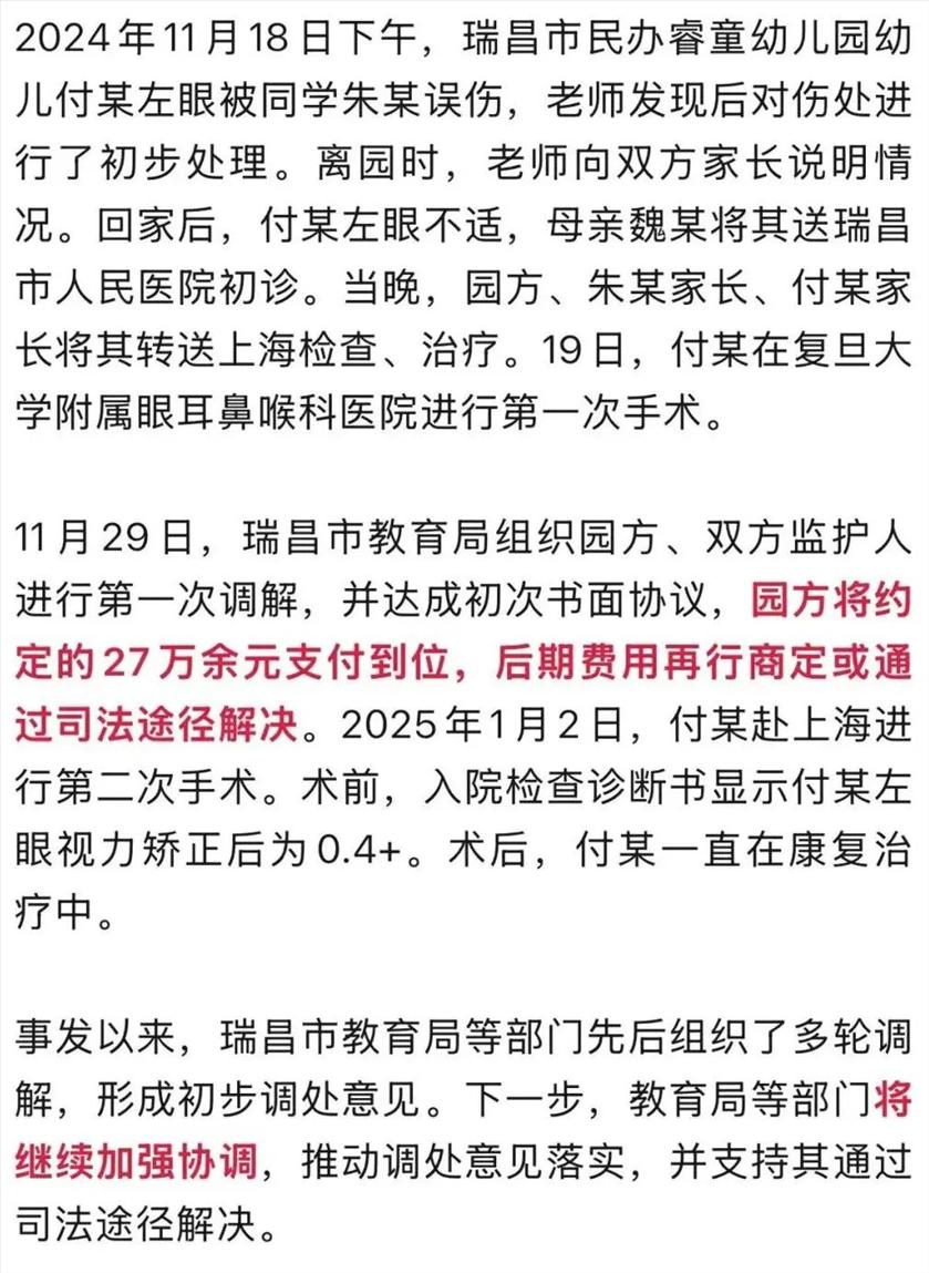近日,“一男孩在幼儿园被戳伤致左眼失明”一事,引发关注。