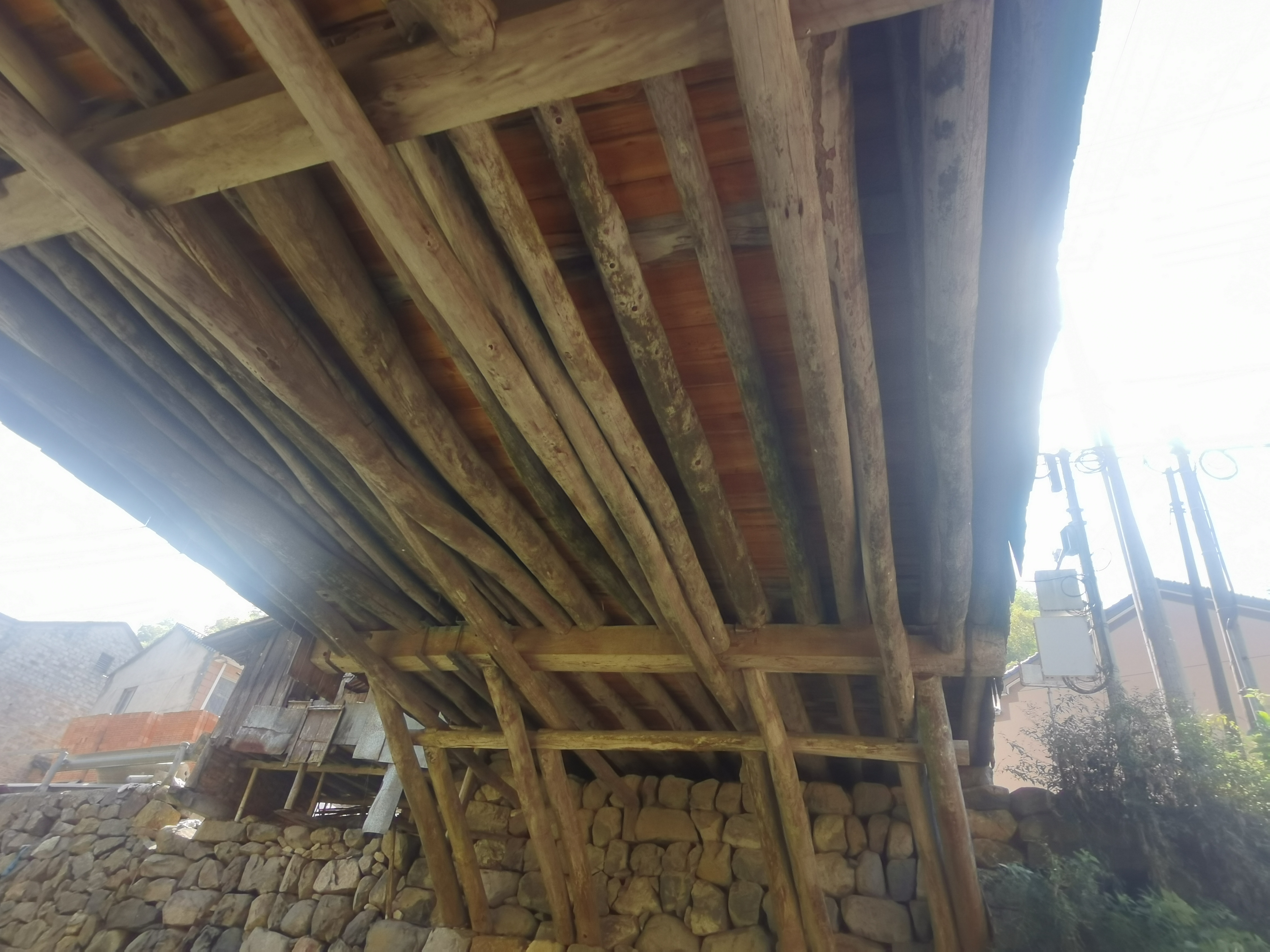 守护家乡古桥,今天来找一座廊桥,卧渡桥位于奉化区萧王庙街道袁家岙村溪水之上。 据桥头所立碑记,卧渡桥自袁氏在此“启族”便有,取名“卧渡”,乃“长桥卧波,便人济渡”的意思。清乾隆丁酉(1777)年,该桥进行了一次公修重建,“叠木为梁,架分七政而屋焉,以避风雨,息行人”,意思是桥上共有廊屋七楹,可以供行旅歇脚,乡民憩息。 不过,这座桥曾在上世纪20年代一次大水中被冲毁,随即重建,现桥横梁下方刻有“民国十三年(1924)重建”字样。 据我市古桥研究者朱永宁先生测量,卧渡桥桥面长14.81米,净跨11.92米,桥宽6.5米,桥面中间走道净宽2.38米。桥面上五楹,两头溪岸各一楹,南岸一楹因建造公路而改建。据推算,全桥总长约为22米。 卧渡桥最值得一看的是桥板下方的结构。上海交通大学木结构建筑研究与设计中心主任刘杰,曾将卧渡桥案例引入2017年出版的《中国木拱廊桥建筑艺术》一书。他认为,卧渡桥是“斜撑与八字形组合撑架式木拱廊桥”,现仅发现一例。该桥拱架结构由八字形撑架、斜撑架、斜撑杆组成,其中“斜撑架上顶横木,由八字形撑架中的斜杆与斜撑杆夹持,形成类似剪刀撑的结构,精巧妙绝”。