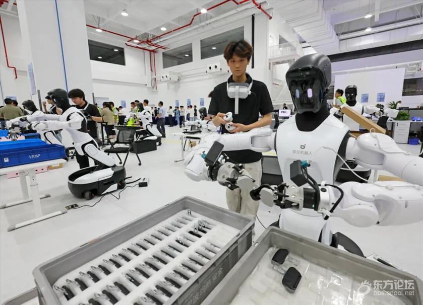![]() 机器人展示叠衣服。 10月16日 普智未来人形机器人新产品G2 在宁波发布 该款机器人拥有较高的自由度 可以胜任更多的工作 同日 年产3000台以上人形机器人的 新生产线同步启用 ![]() 新产品发布会现场。 作为新一代轮式机器人,新发布的G2拥有50个自由度的灵活本体、5个自由度的腰部结构、亚毫米级操作精度及5公斤的单臂额定负载能力,支持24小时不间断作业。它可以在更为狭窄的空间完成较高自由度的操作,适用于工业、物流、导览、安检、科研等多个场景。 ![]() 普智未来的新产线。 据悉,普智未来由宁波均普人工智能与人形机器人研究院有限公司和智元创新(上海)科技有限公司共同投资成立,致力于在甬打造集机器人本体生产、二次开发、商业化推广于一体的综合性机器人产业基地,推动人形机器人在制造业、服务业等领域的规模化应用。