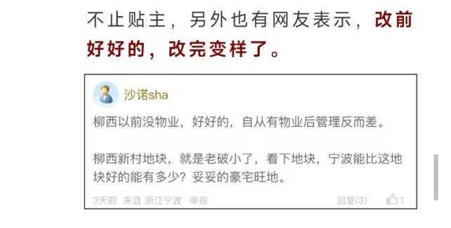 还有就是胎里毛病,地势低地面沉降导致台风天做大水,修修补补无济于事,只能拆掉重建才行. 小区至今破破烂烂,五年改了二次全部是形象式豆腐渣工程,前几年陈**空降柳锦,每天就想着做工程搞装修,随意在小区砍树41棵,还不用担责。 |